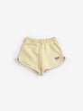 Uns pantalons curts de color groc. Dissenyats amb cintura elàstica, pedaç, tall curt, folre polar i ajust relaxat. Fabricat a Espanya.