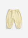 Uns pantalons de color groc. Dissenyats amb baixos elàstics, cintura elàstica, brodat, pedaç al genoll, ajust folgat, cordó ajustable, llargada fins als turmells i folre polar. Fabricat a Espanya.