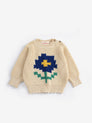 Un jersei de color blanc. Amb disseny de màniga llarga, espatlla caiguda, tancament amb botons a l'espatlla, punys de canalé, brodat, punt texturat, ajust folgat, baix de canalé i coll rodó. Fabricat a Portugal.