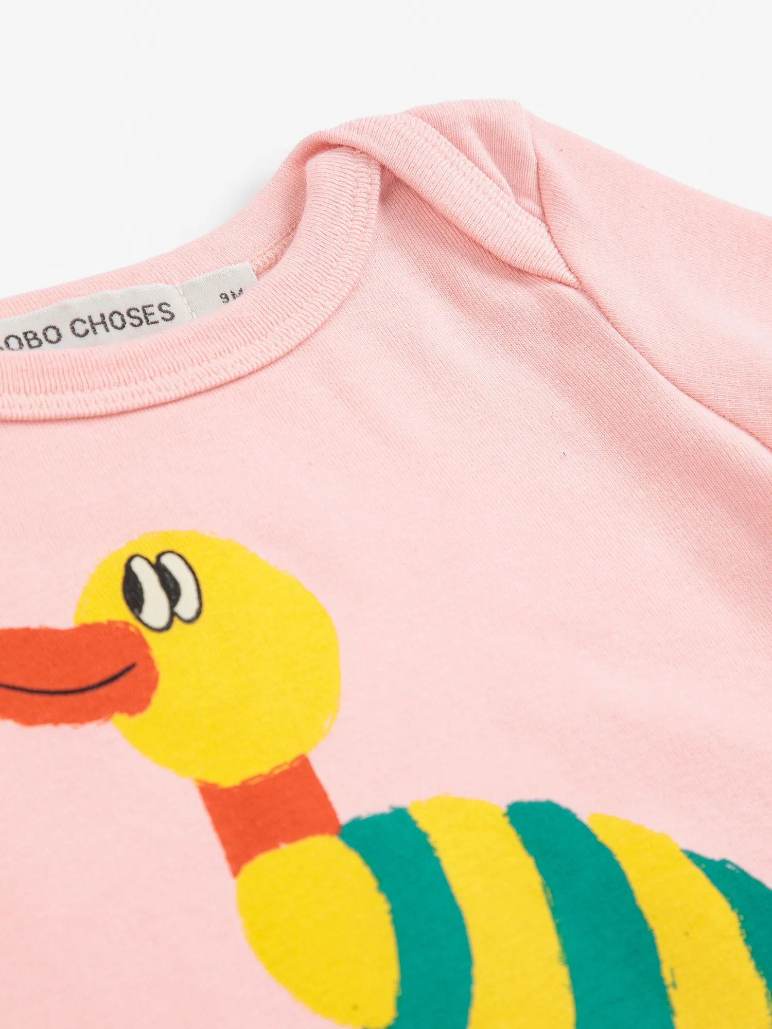 Bodi de color rosa clar. Amb disseny de màniga llarga, tancament a pressió a l'espatlla i a l'entrecuix, ajust cenyit i coll rodó. Fabricat a Espanya.
