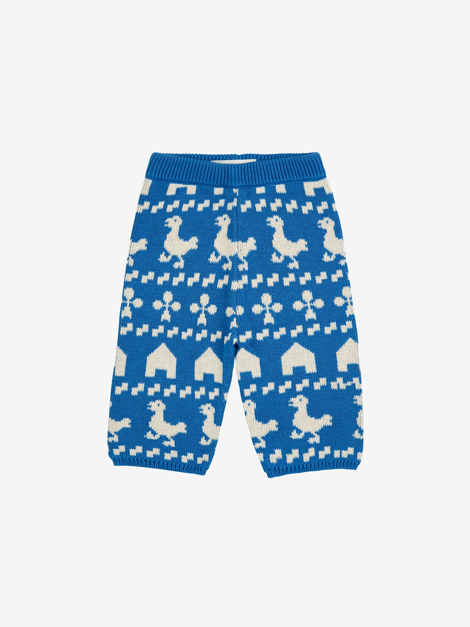Pantalons blaus. Dissenyats amb cintura elàstica, jacquard, tall recte, baixos de canalé i tall llarg. Fabricat a Espanya.
