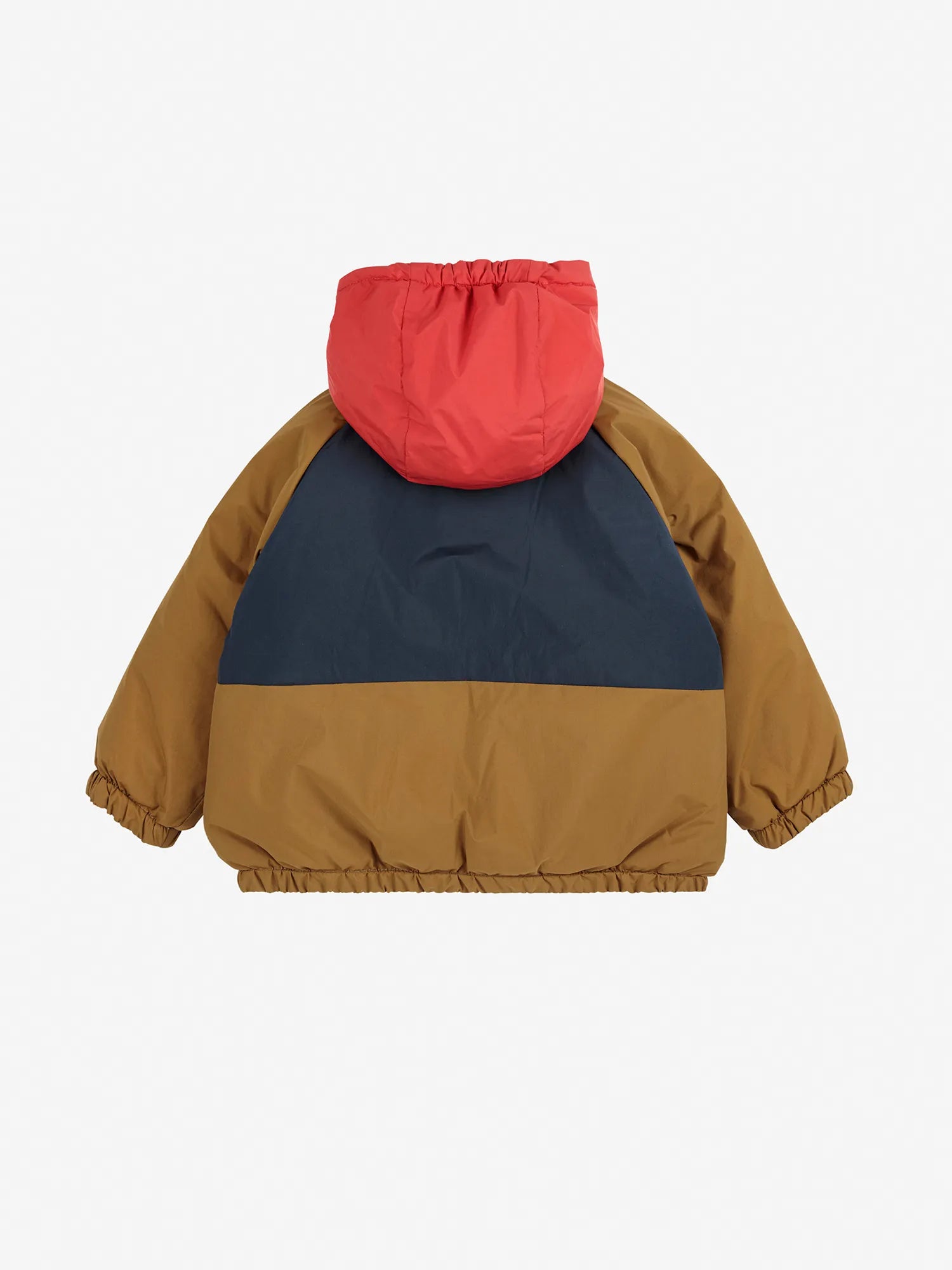 Anorac multicolor. Dissenyada amb caputxa, màniga llarga, màniga raglan, cremallera, baix elàstic, punys elàstics, butxaca rivetejada, brodat, embuatat lleuger, reversible, butxaca amb costura i ajust relaxat. Fabricat a la Xina.