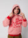 Dessuadora vermella. Amb disseny de màniga llarga, amb caputxa i amb cremallera, punys i baix de canalé, ajust folgat i interior de folre polar raspallat. Fabricat a Espanya.