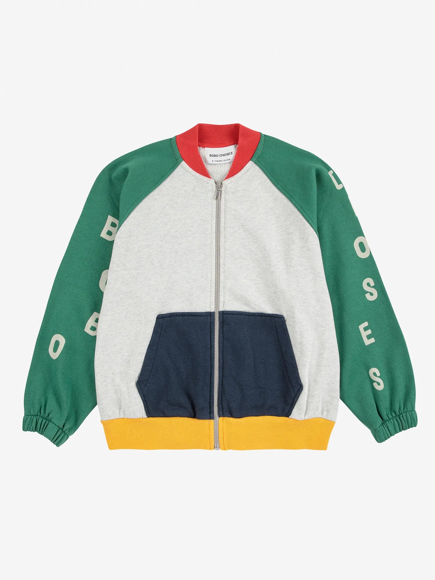 Dessuadora multicolor. Amb disseny de màniga llarga i màniga raglan, amb cremallera, punys elàstics, ajust folgat, baix de canalé, coll alt, butxaca cangur i interior de folre polar raspallat. Fabricat a Portugal.