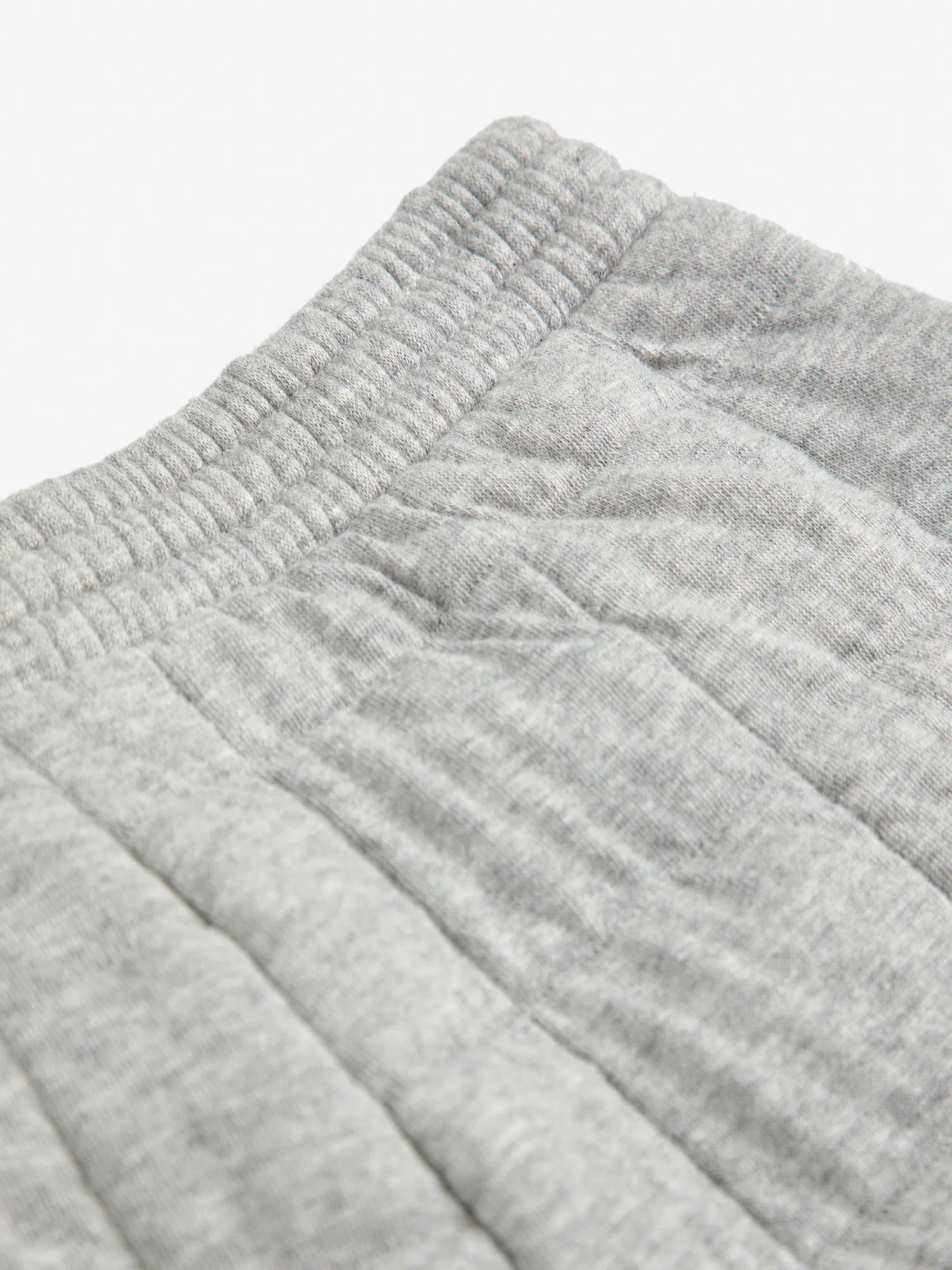 Pantalons gris jaspiat. Dissenyats amb cintura elàstica, ajust cocoon, tall llarg, embuatat enconxat, butxaca de pedaç i butxaca amb costura. Fabricat a Portugal.