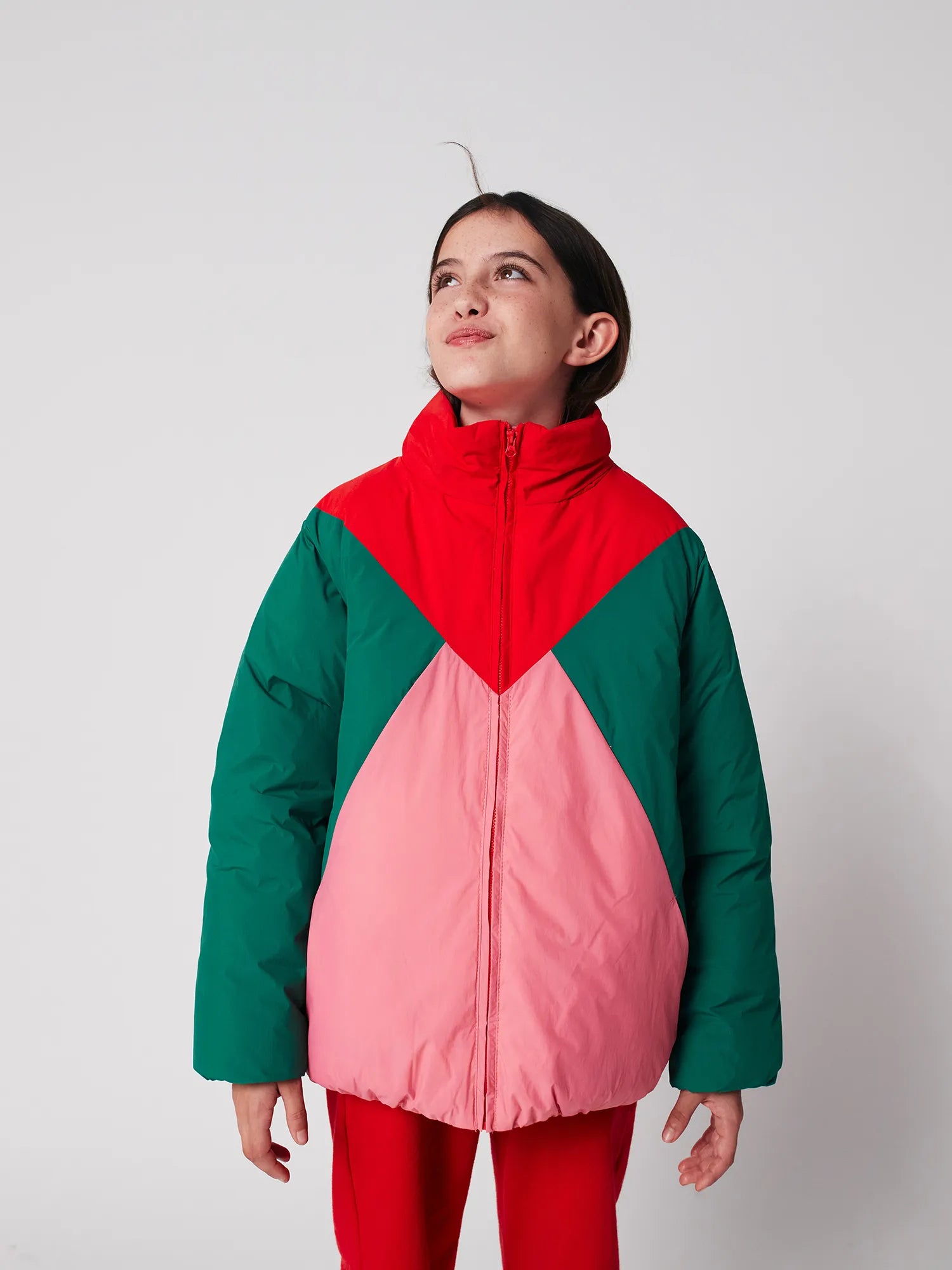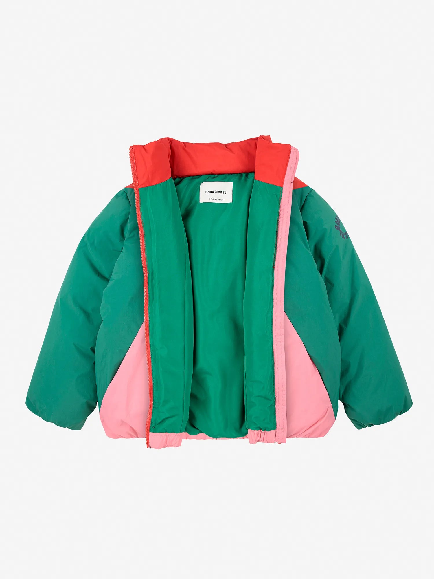Anorac multicolor. Amb disseny de màniga llarga, tancament amb botons al davant, baix elàstic, punys elàstics, embuatat gruixut, folre reciclat, coll alt, butxaca amb costura i ajust relaxat. Fabricat a la Xina.