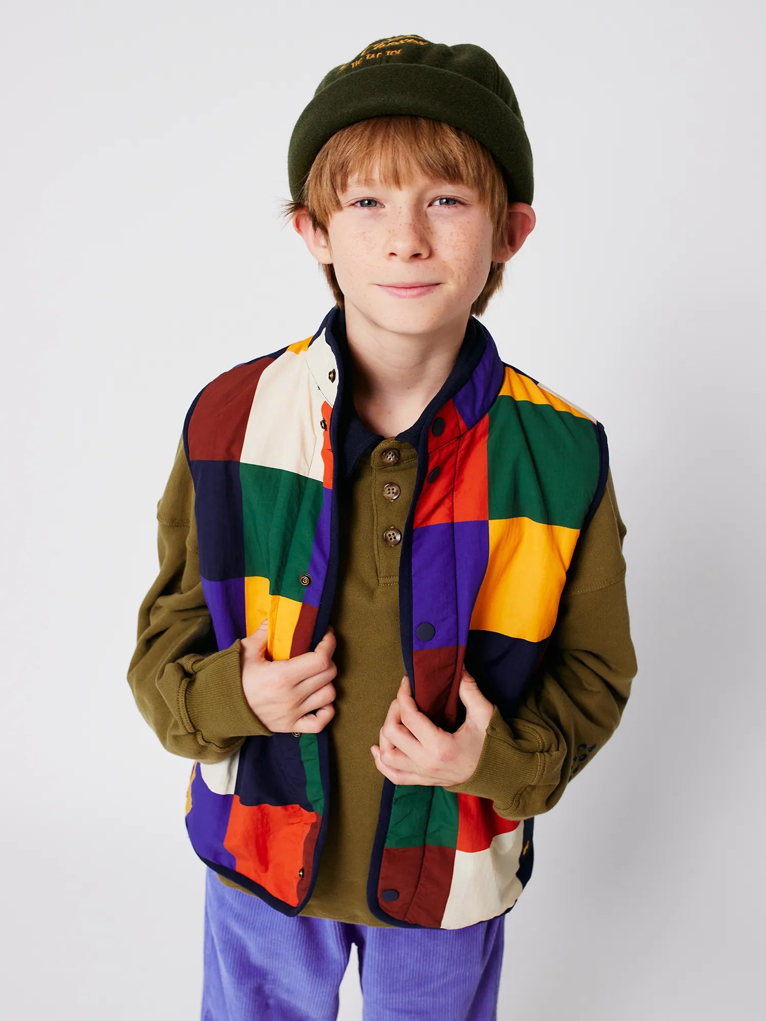 Armilla multicolor. Dissenyada sense mànigues, amb tancament a pressió al davant, detalls de teixit a contrast, reversible, coll alt, butxaca amb costura i ajust relaxat. Fabricat a la Xina.