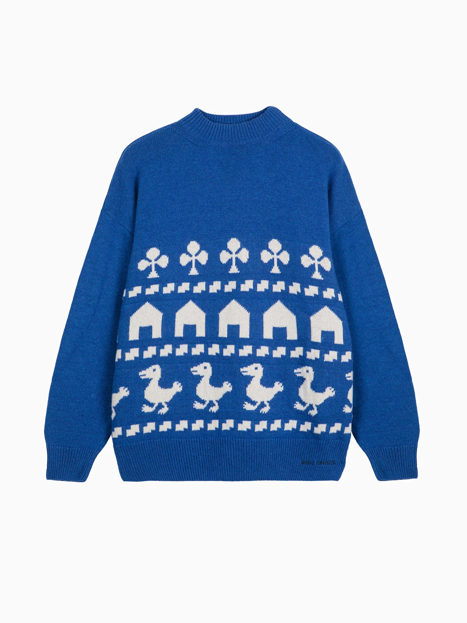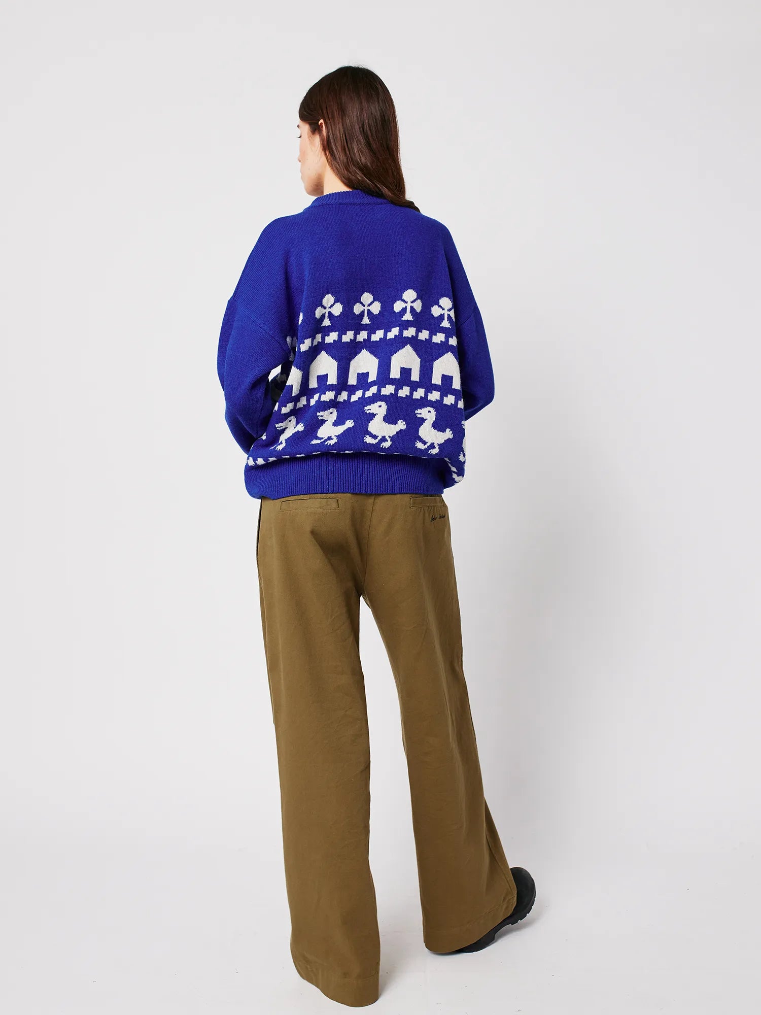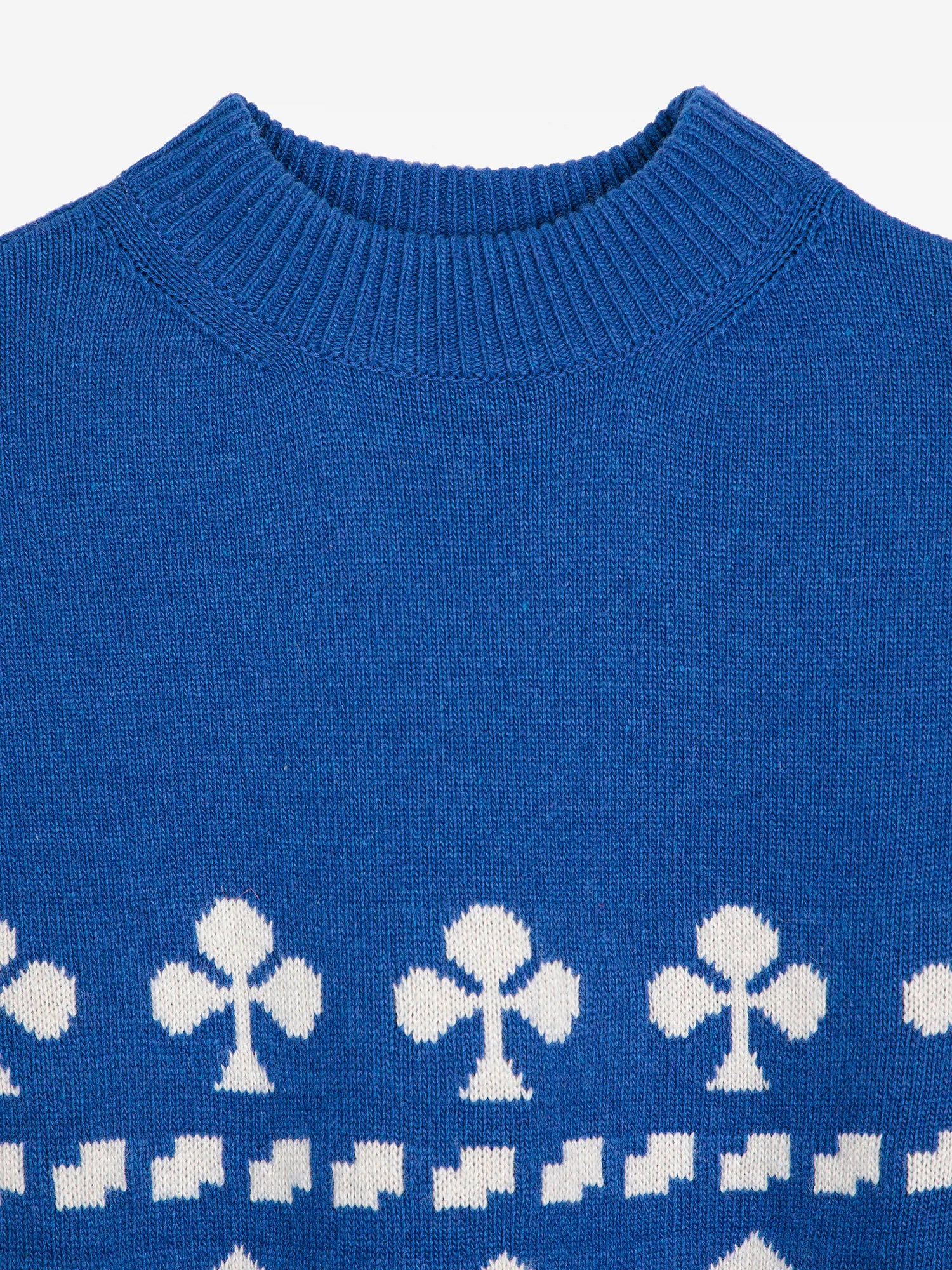 Jersei blau. Dissenyat amb costura de l'espatlla caiguda. Tallatge normal, tria la teva talla habitual. Fabricat a Espanya.