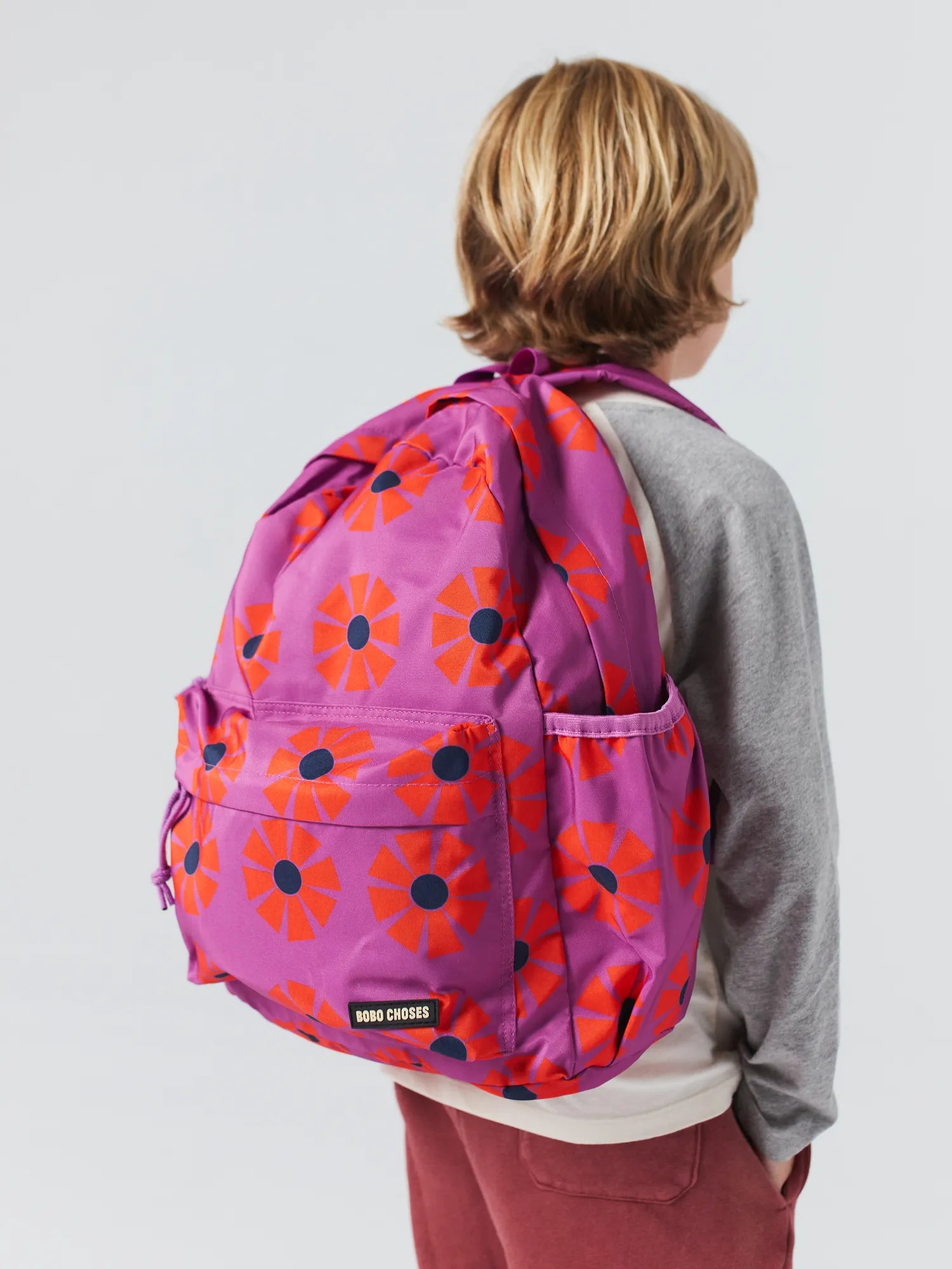 Motxilla escolar lila. Fabricat a la Xina.
