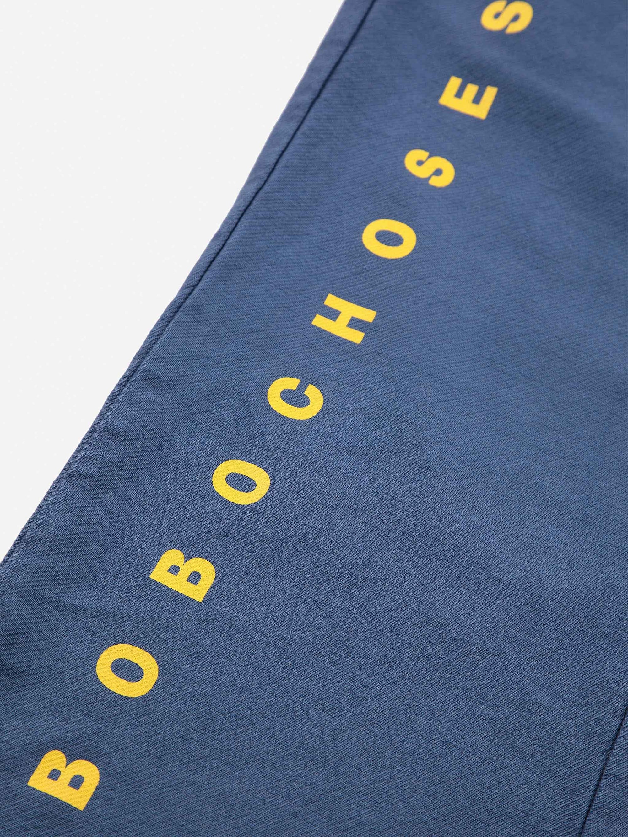 Els pantalons de teixit de color blau marí fins als turmells per a infants són una peça esportiva atemporal feta d'una barreja de cotó i cotó reciclat. Dissenyats amb un entrecuix normal i un ajust recte, ofereixen comoditat durant tot el dia. La cintura elàstica fa que sigui una peça segura i a la vegada flexible per portar-la cada dia.