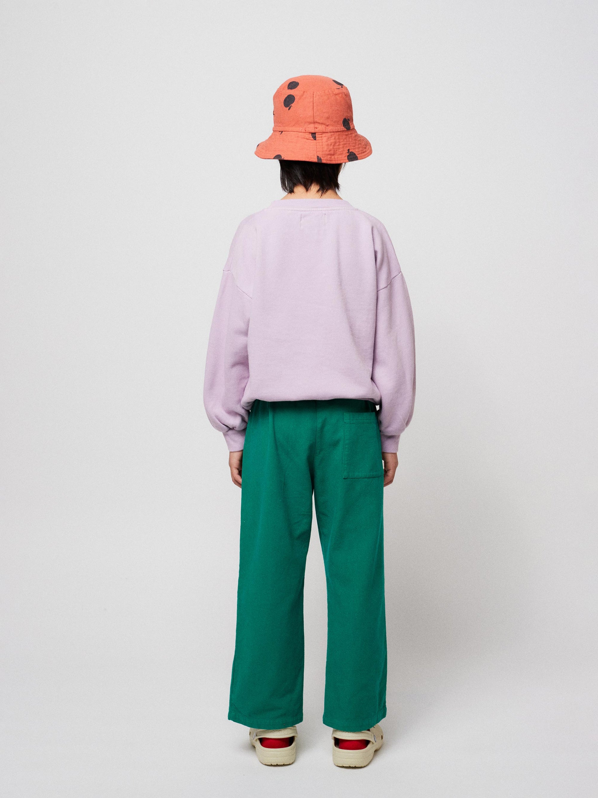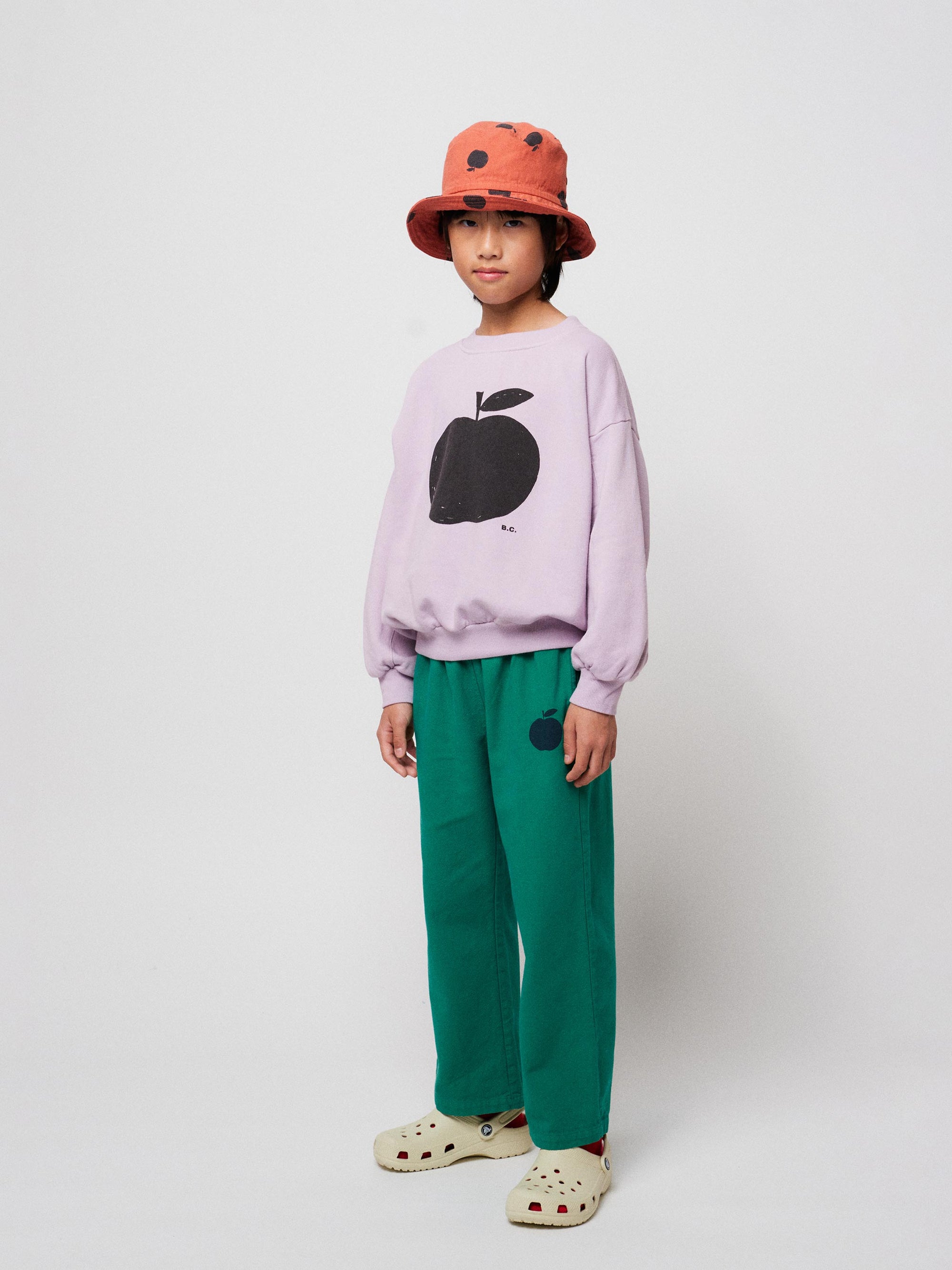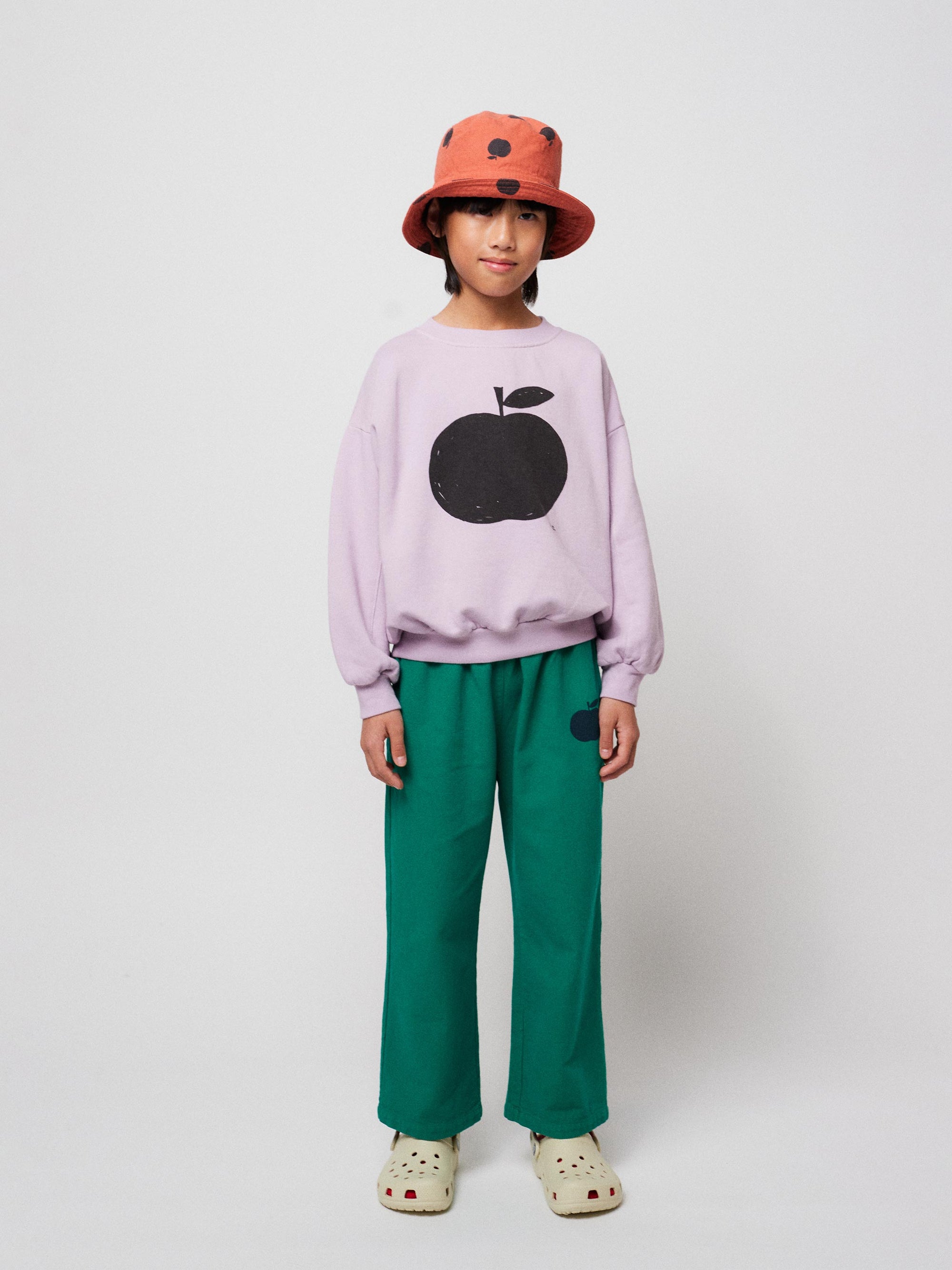 Hem dissenyat els pantalons rectes "Poma" per recuperar detalls dels inicis de Bobo Choses, com la petita poma de color blau marí que hem inclòs. Aquests pantalons, de color verd intens, permeten que els infants expressin el seu estil i mostrin la seva personalitat amb conjunts que reflecteixin la seva alegria.