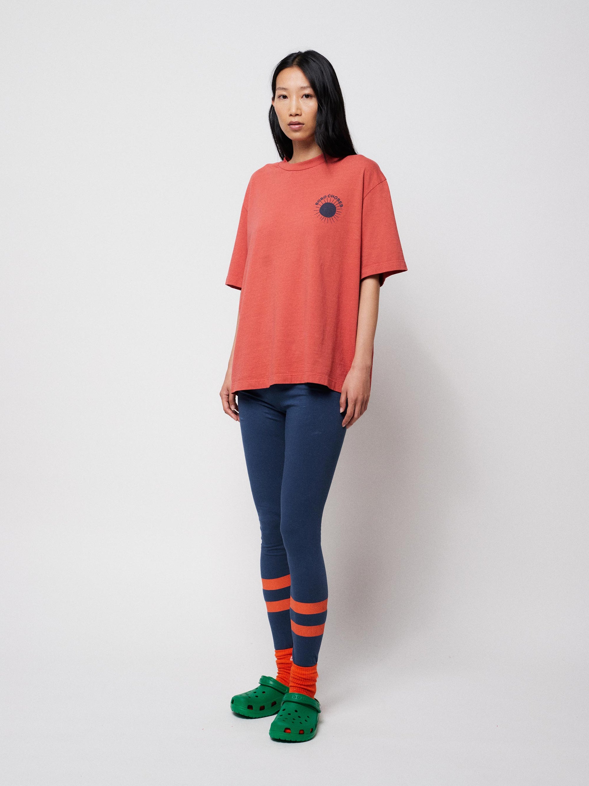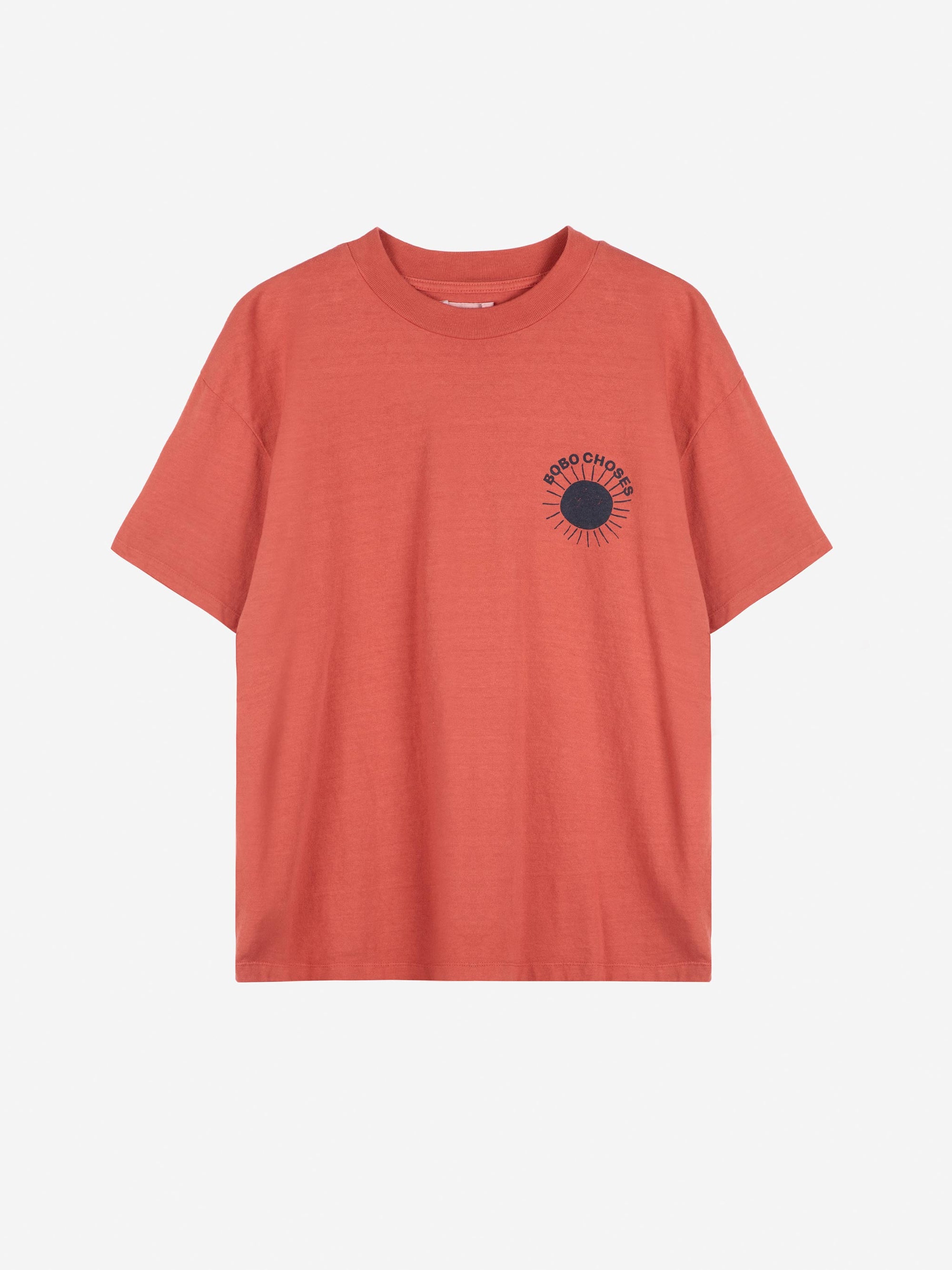 El disseny de la samarreta vermella parla per si sol. El petit motiu Sun gravat al pit en blau mitjanit, així com el logotip de Bobo Choses a l'esquena, realça el to càlid de la peça. Feta amb cotó reciclat, és una peça transpirable, d'origen sostenible, amb un estil relaxat i un teixit elàstic per lluir un look atemporal.