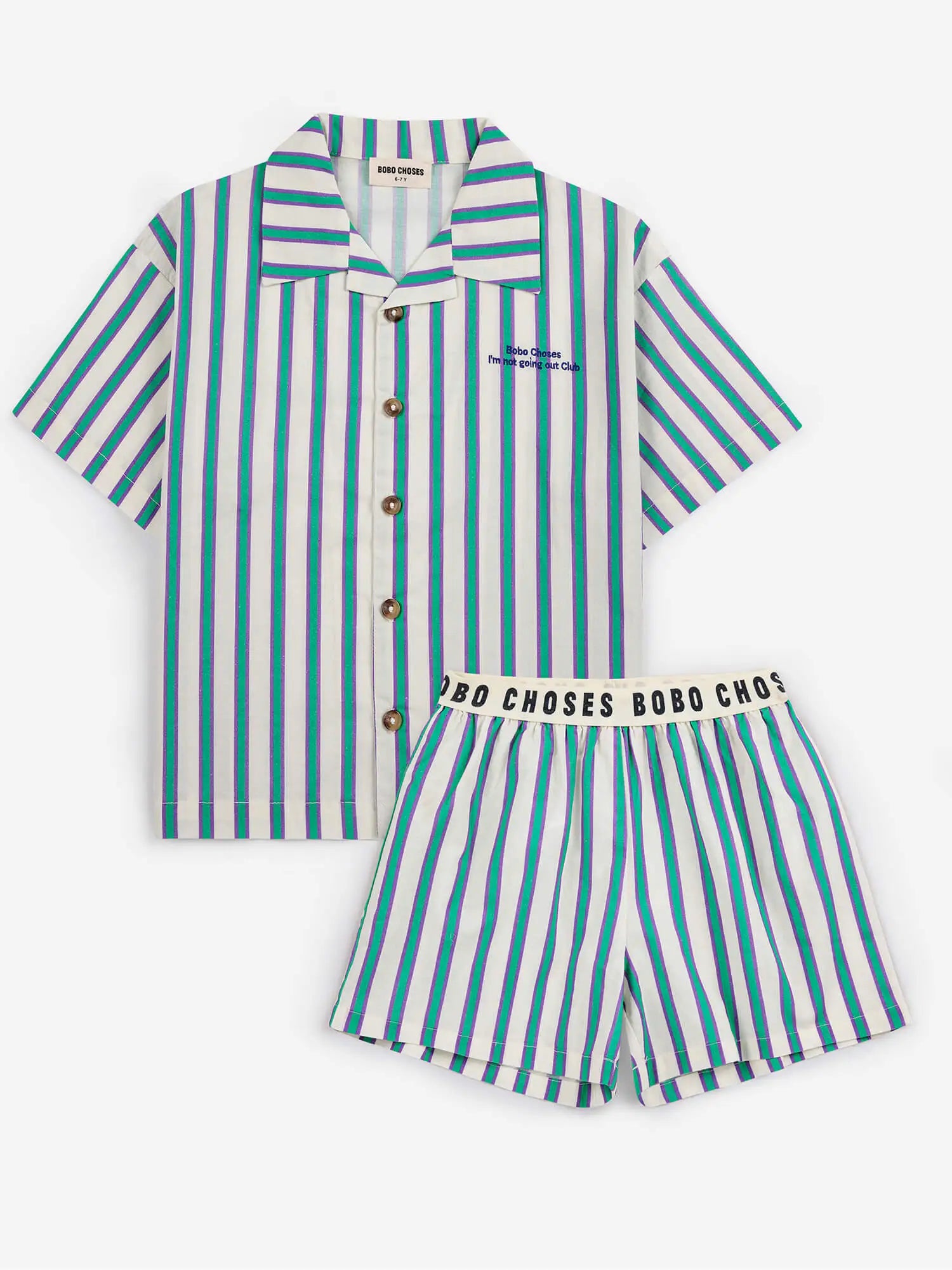 Suavitat amb disseny definit! Aquest conjunt de loungewear entreteixit de color verd, confeccionat 100% de cotó orgànic, combina una camisa de botons de màniga curta amb brodat i uns pantalons curts d'estil relaxat.