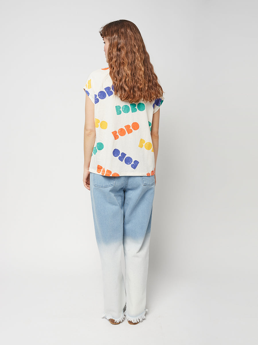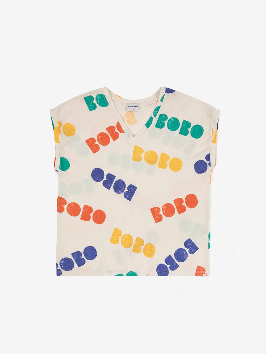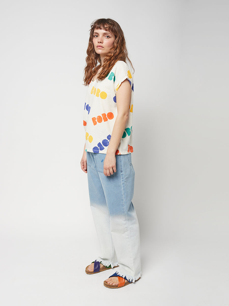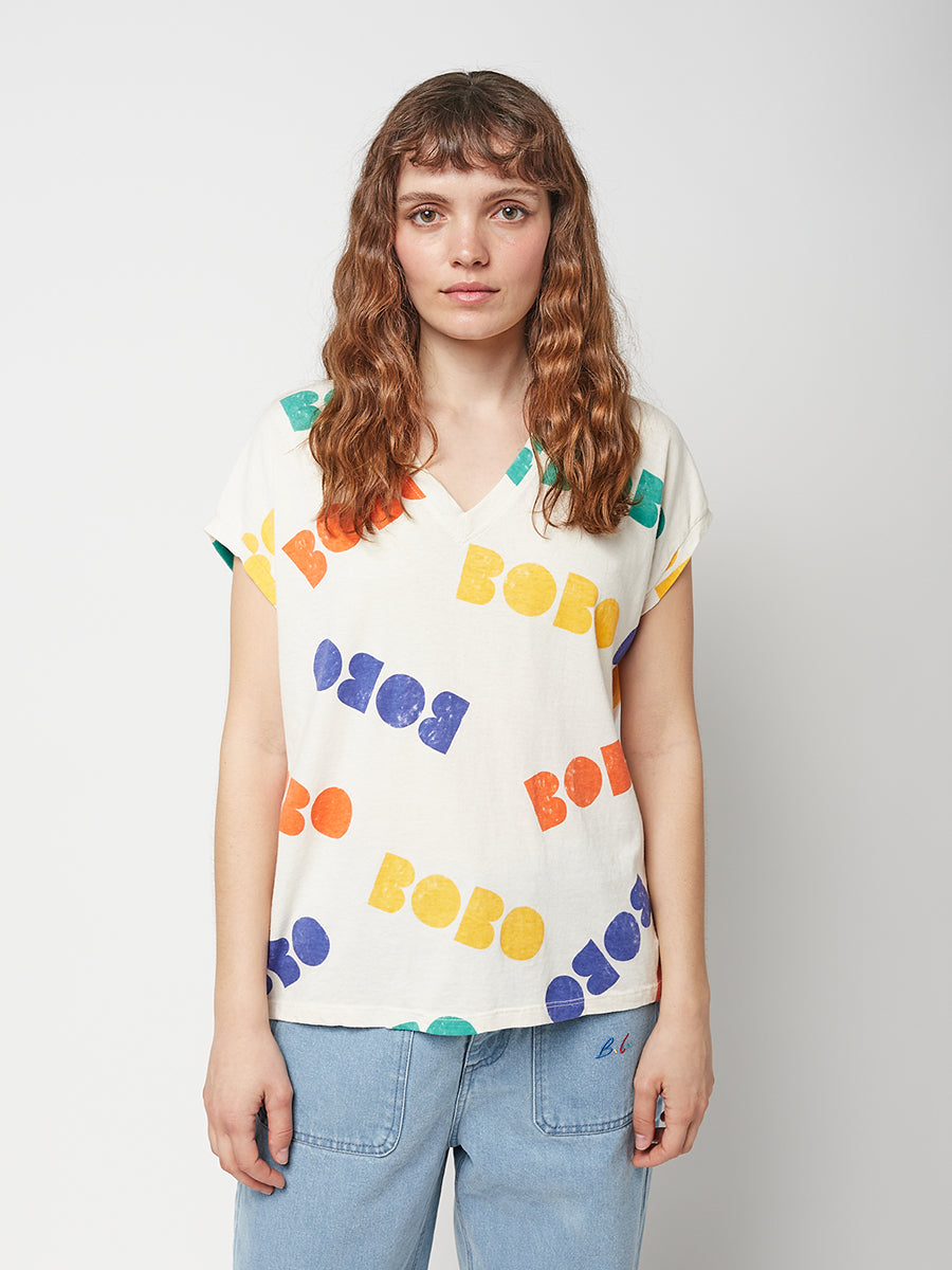 100% organic cotton. beige v neck t-shirt. Designed with v-neck and short sleeves. It has a loose fit. Made in Spain