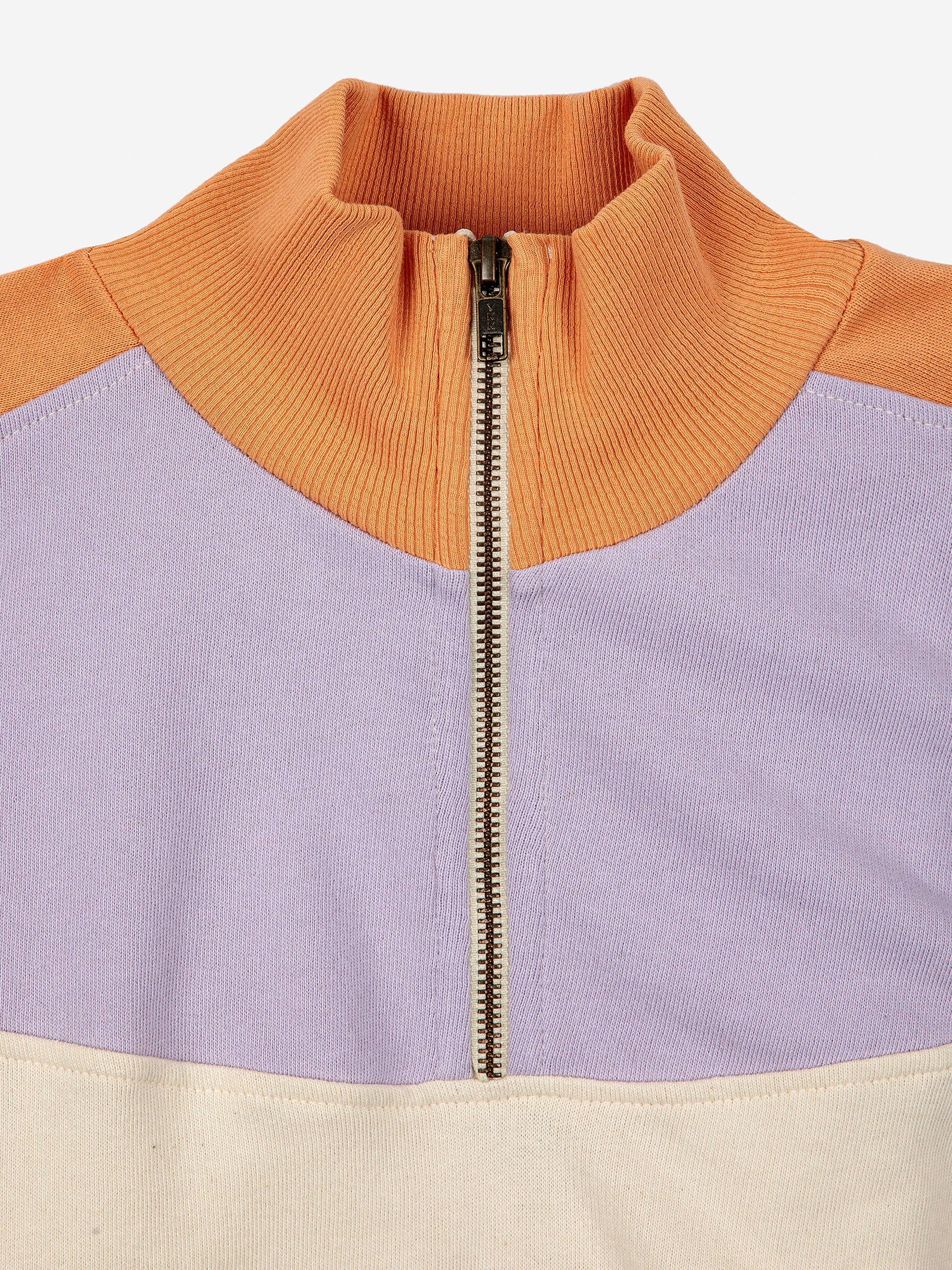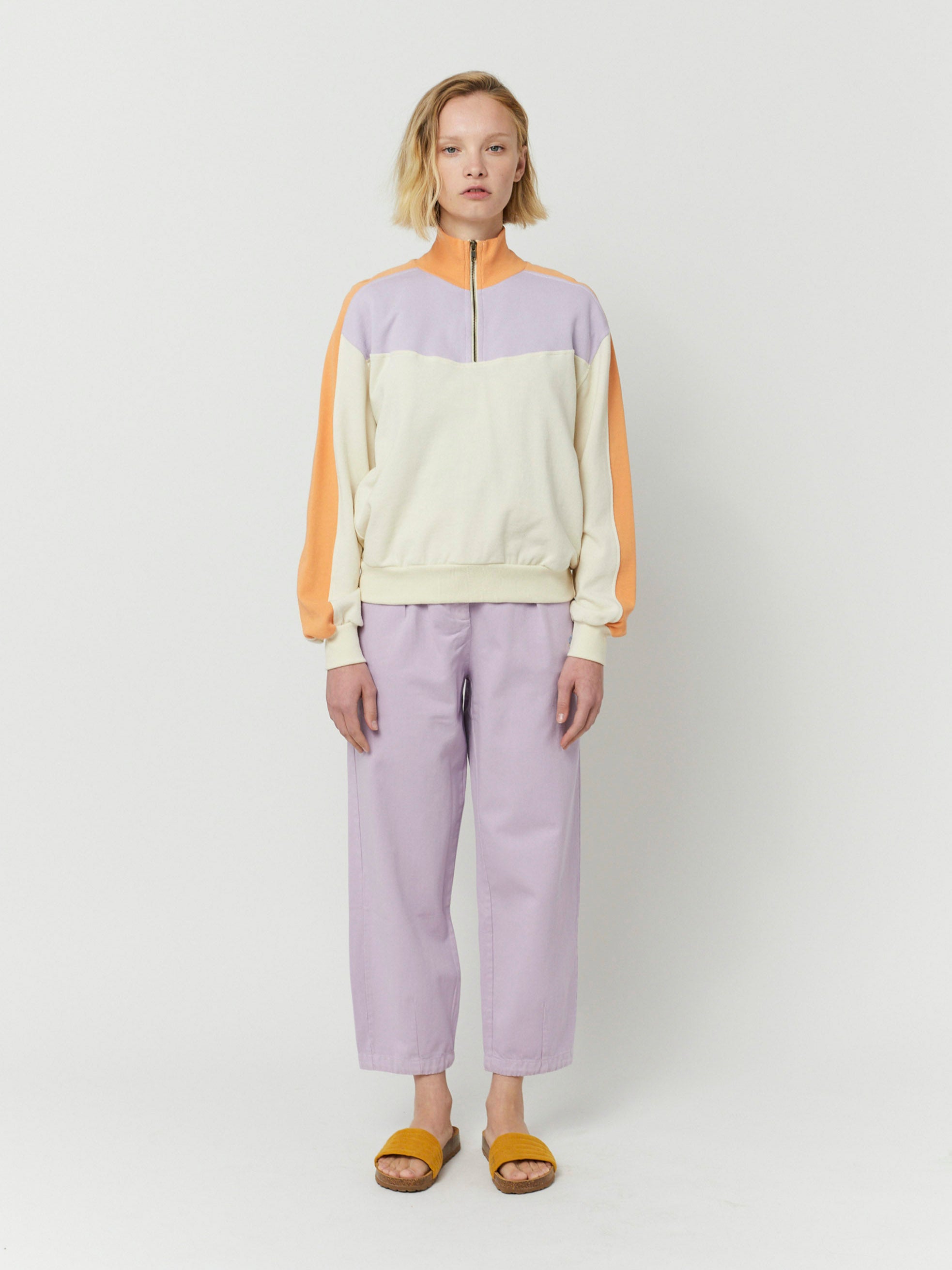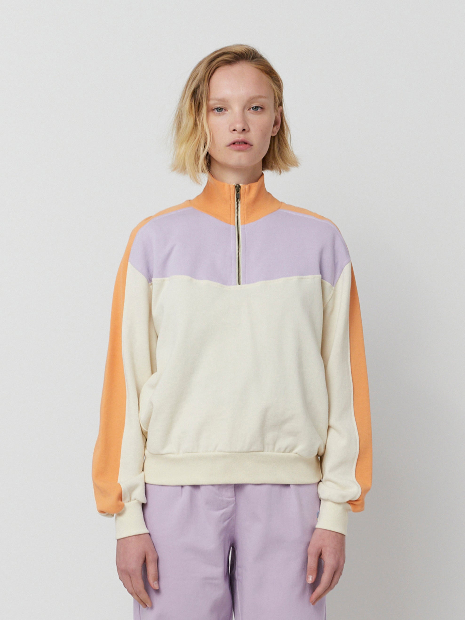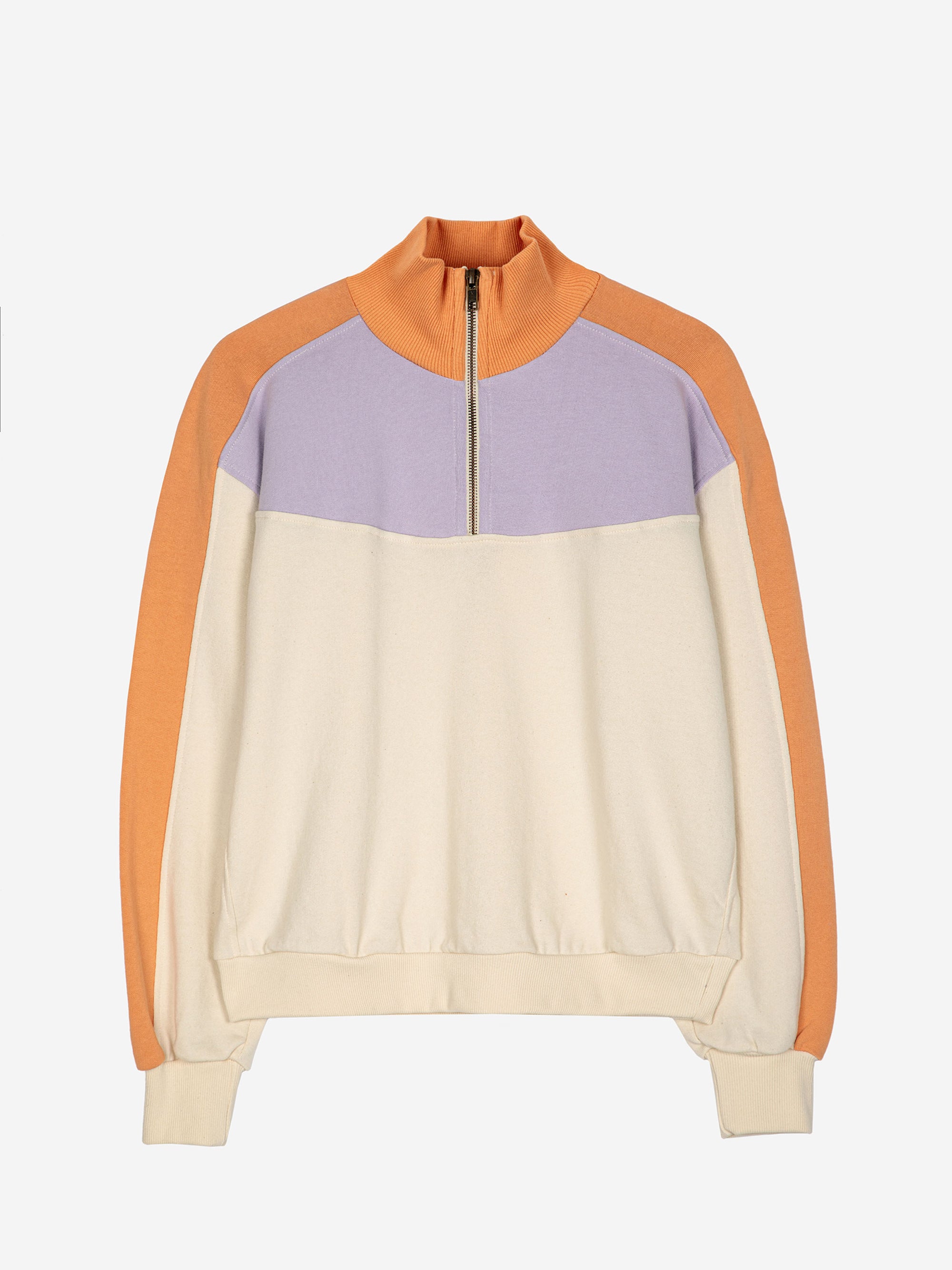 100% organic cotton offwhite zipped sweatshirt. Designed with front zip fastening, ribbed cuffs, embroidery, ribbed bottom and high neck. It has a relaxed fit. Made in Spain