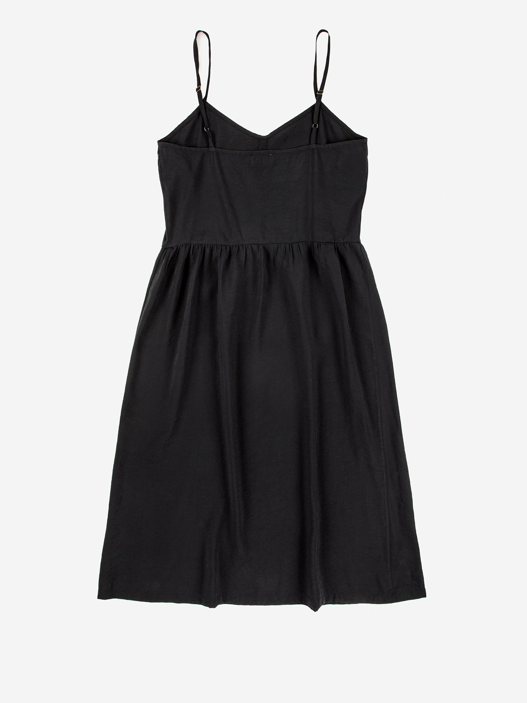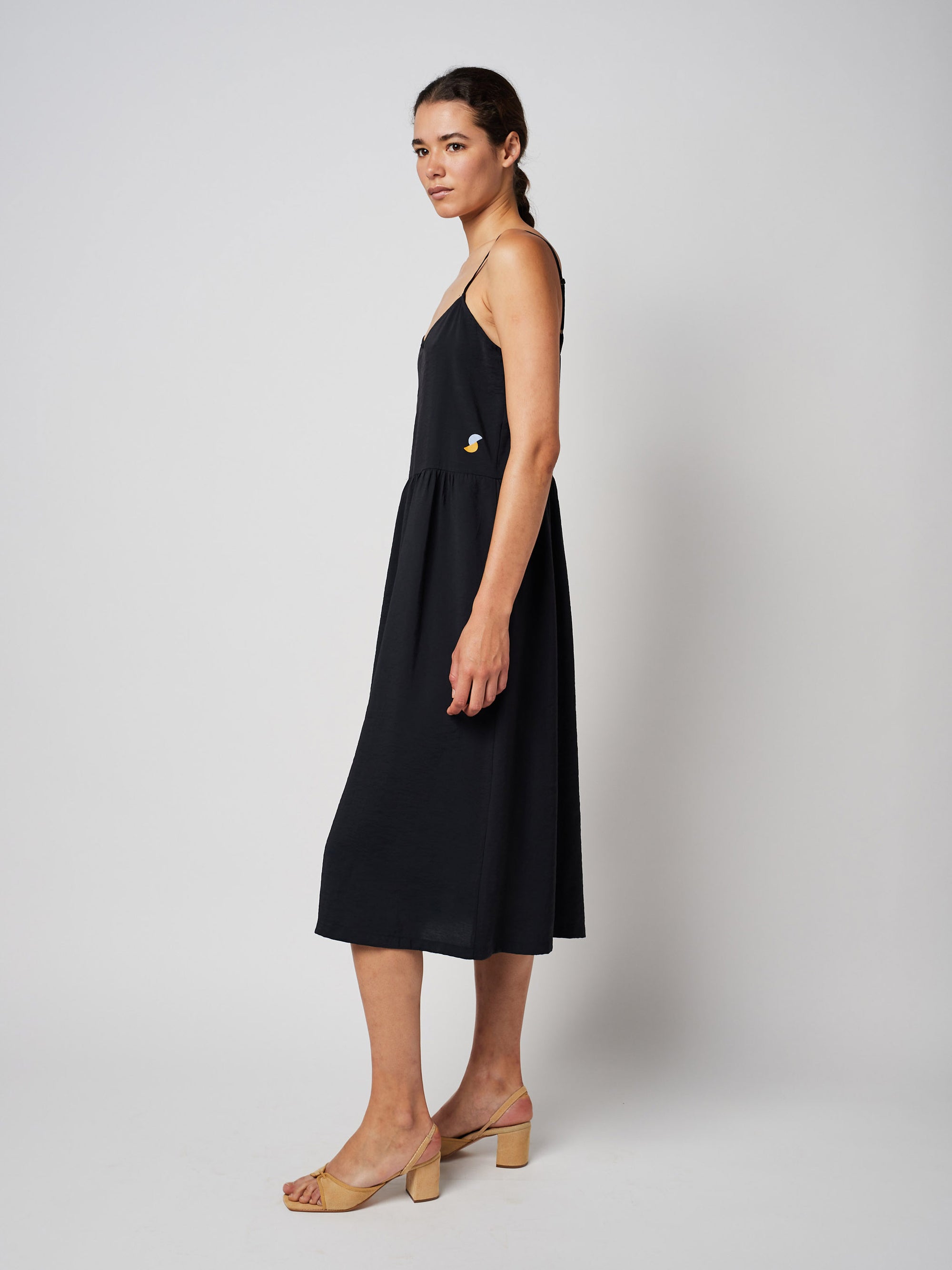 84% modal 16% polyester dark grey sleeveless dress. Designed with adjustable straps and midi length. It has a evasé fit. Made in Spain