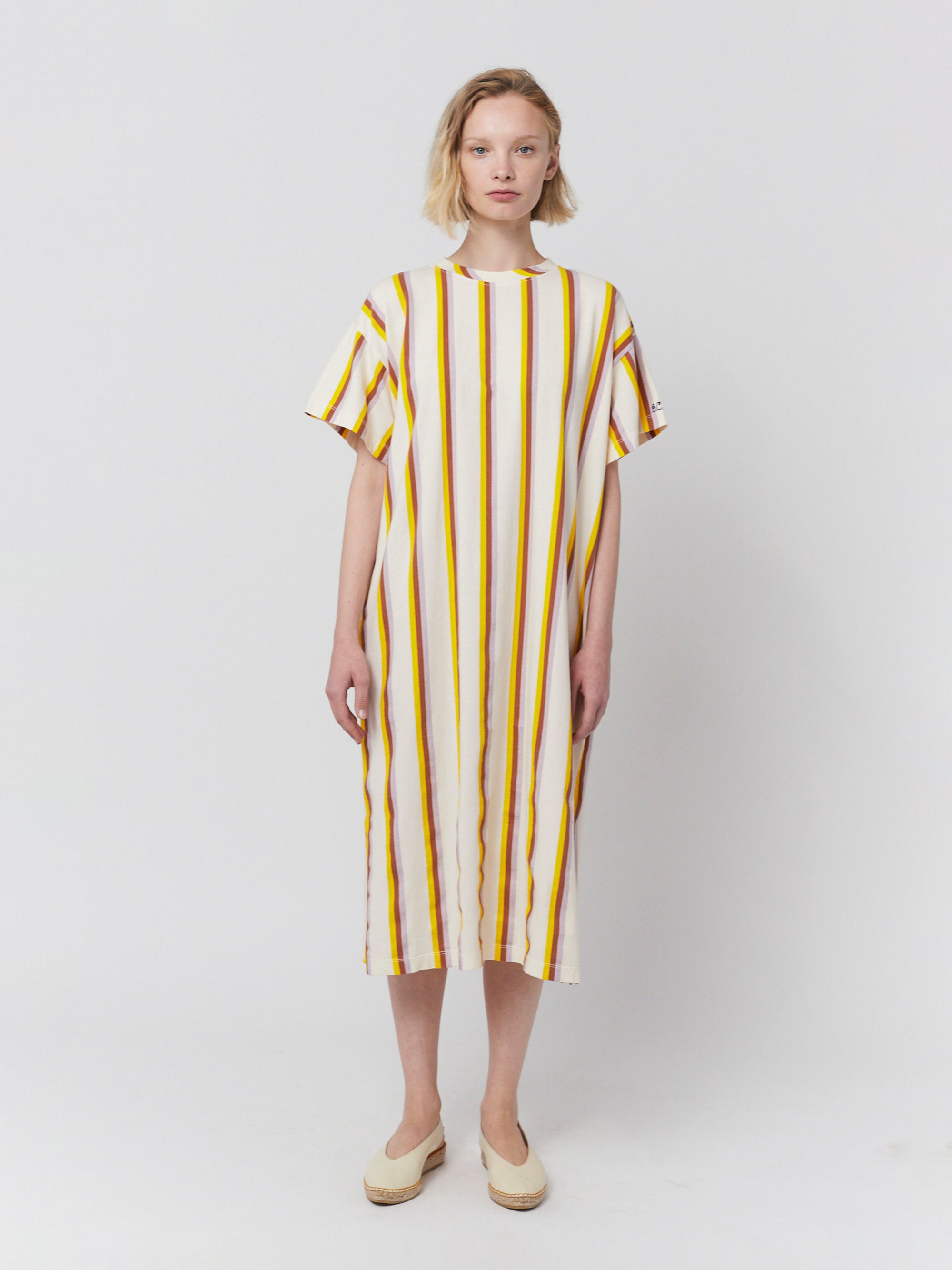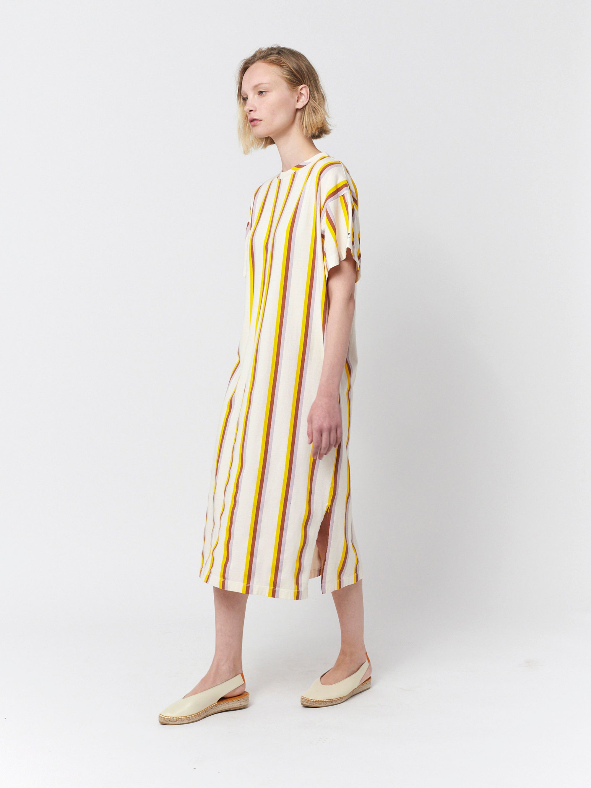 100% organic cotton offwhite short sleeve dress. Designed with short sleeves, embroidery, side slit and long length. It has a relaxed fit. Made in Spain