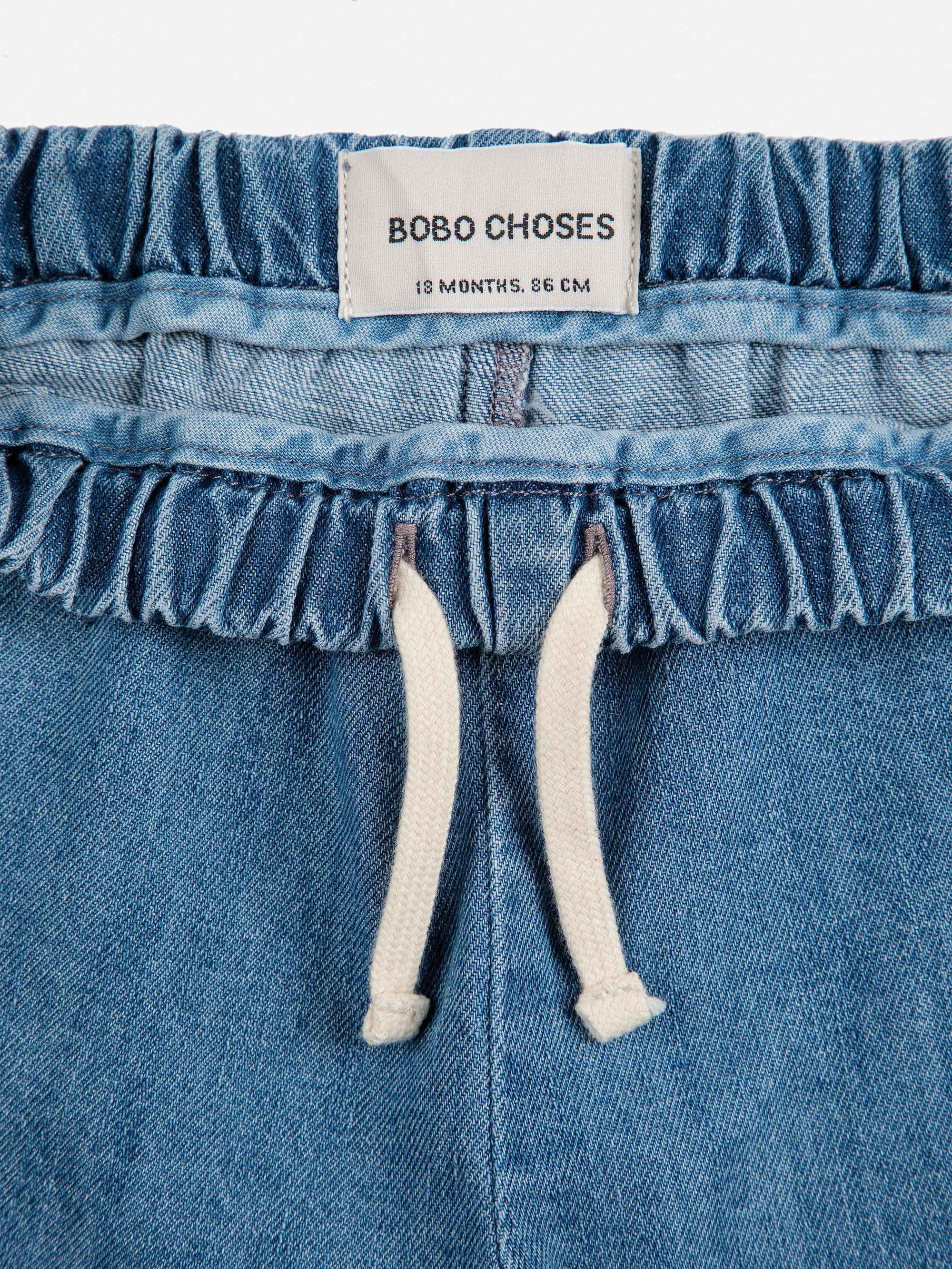 - Design: normaler Schritt, Gummibund, Stickerei, Baggy-Passform, verstellbarer Kordelzug, knöchellang und Denimstoff