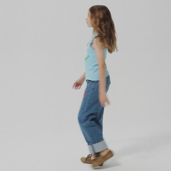 Navy blue pants. Designed with adjustable waistband, front button fastening, front zip fastening, straight fit, back yoke, beltloop, long length, five pockets, denim and turn up hem. Made in Portugal.