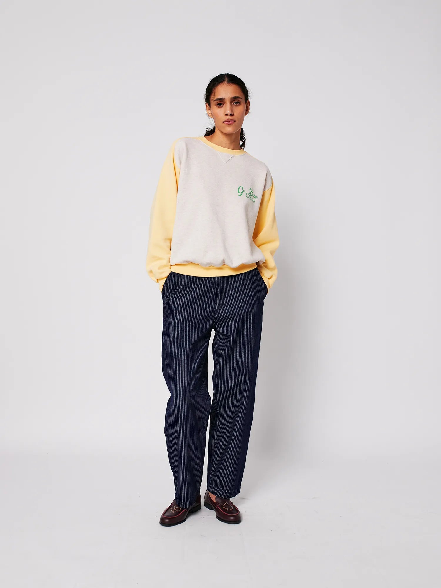 Light yellow sweatshirt. Designed with stretchy fabric. Fits true to size, take your normal size. Made in Portugal.