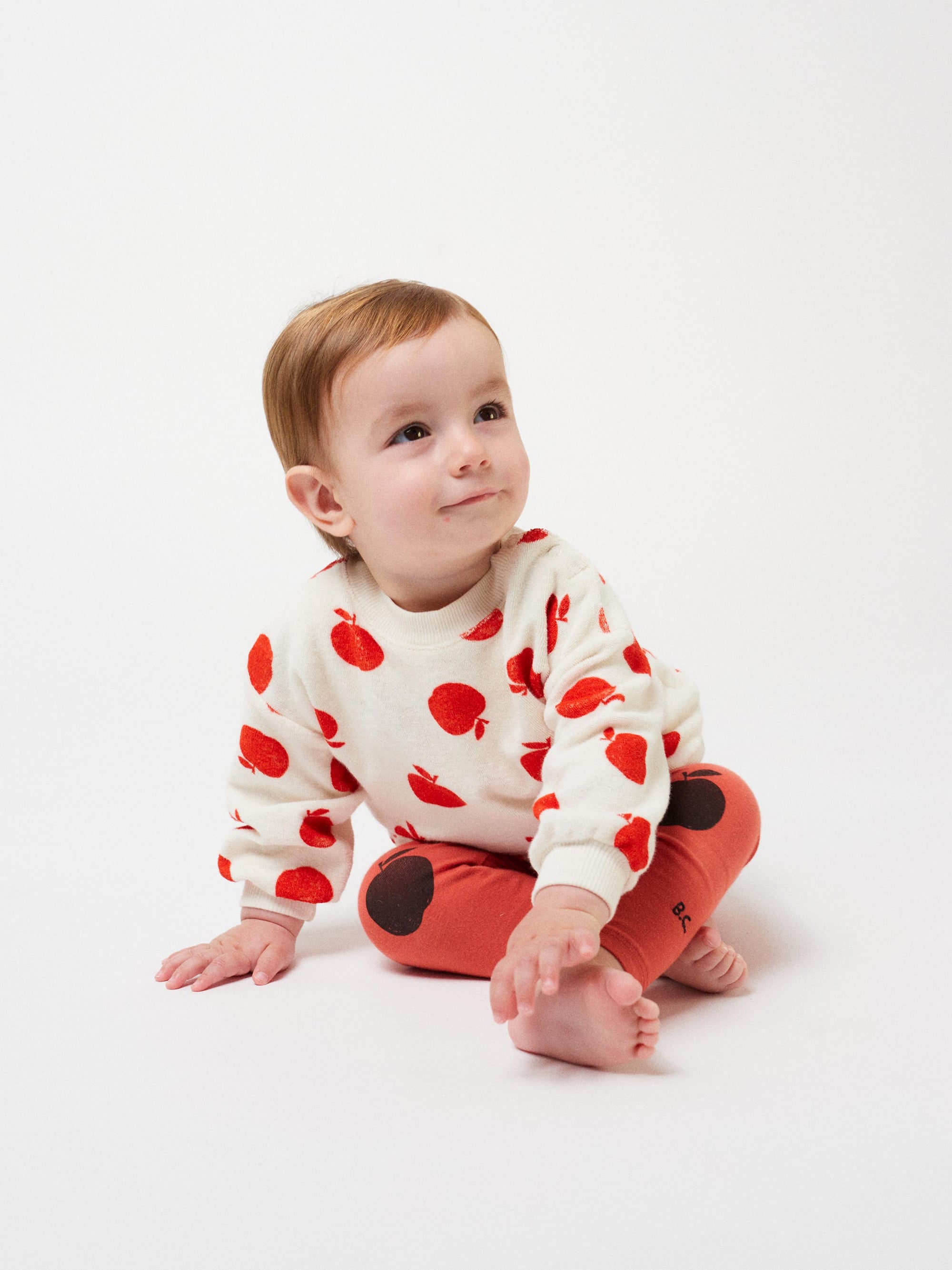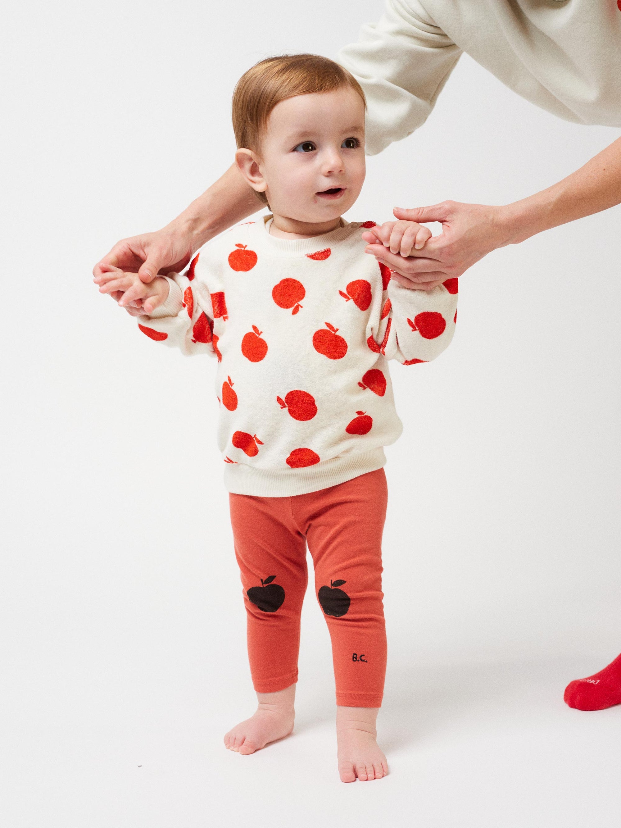 The off-white long-sleeve sweatshirt is adorned with iconic orange Bobo Choses apples throughout. Made from GOTS-certified organic cotton, it features a loose fit with dropped shoulders for enhanced comfort and easy layering. The ribbed cuffs and hem, along with the brushed fleece interior, keep your baby warm.