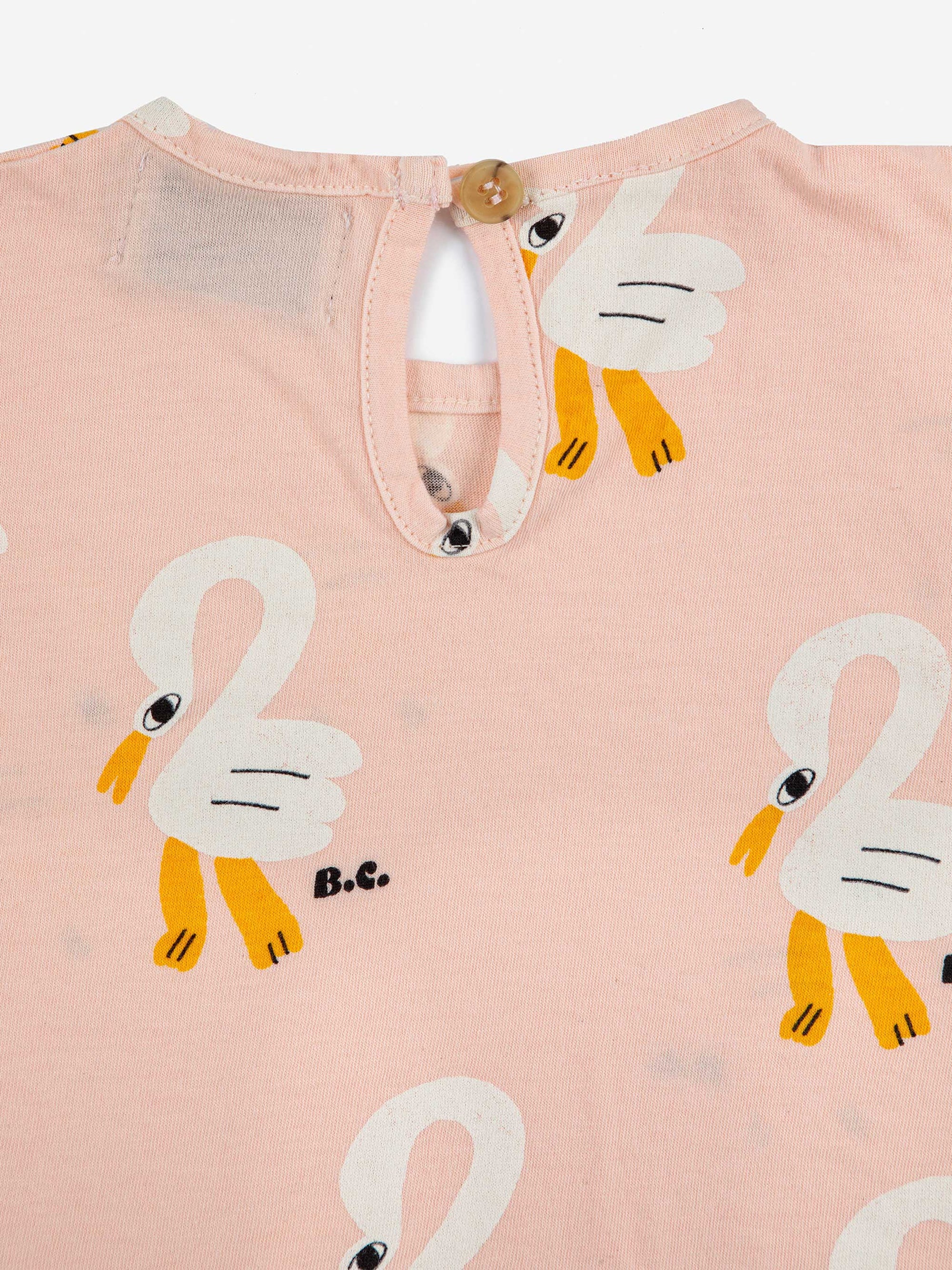 100% organic cotton light pink short sleeve t-shirt. Designed with back button fastening and ruffled detailing. It has a loose fit. Made in Spain