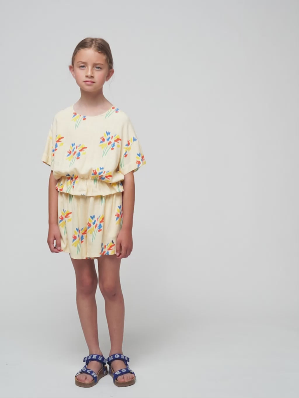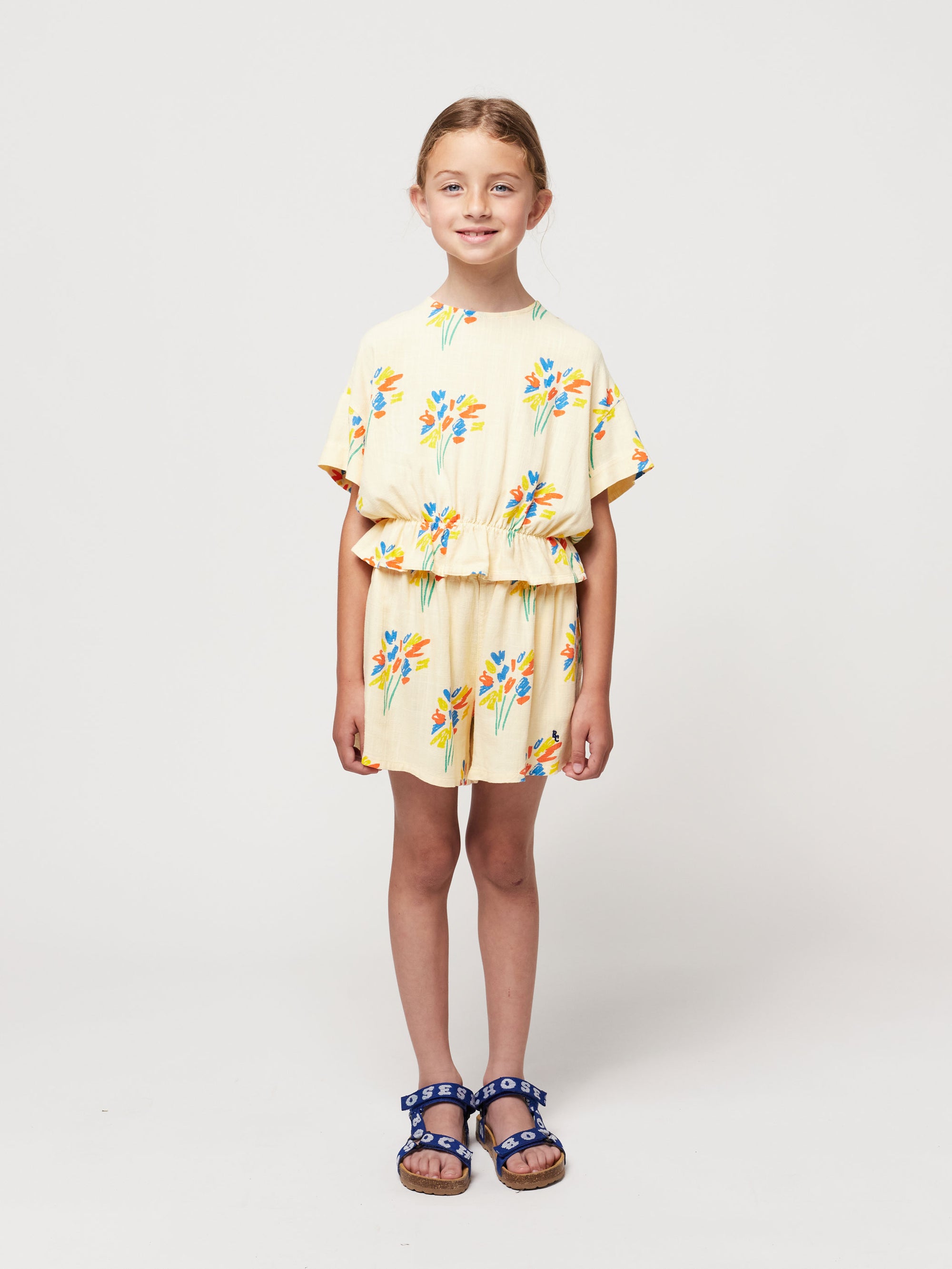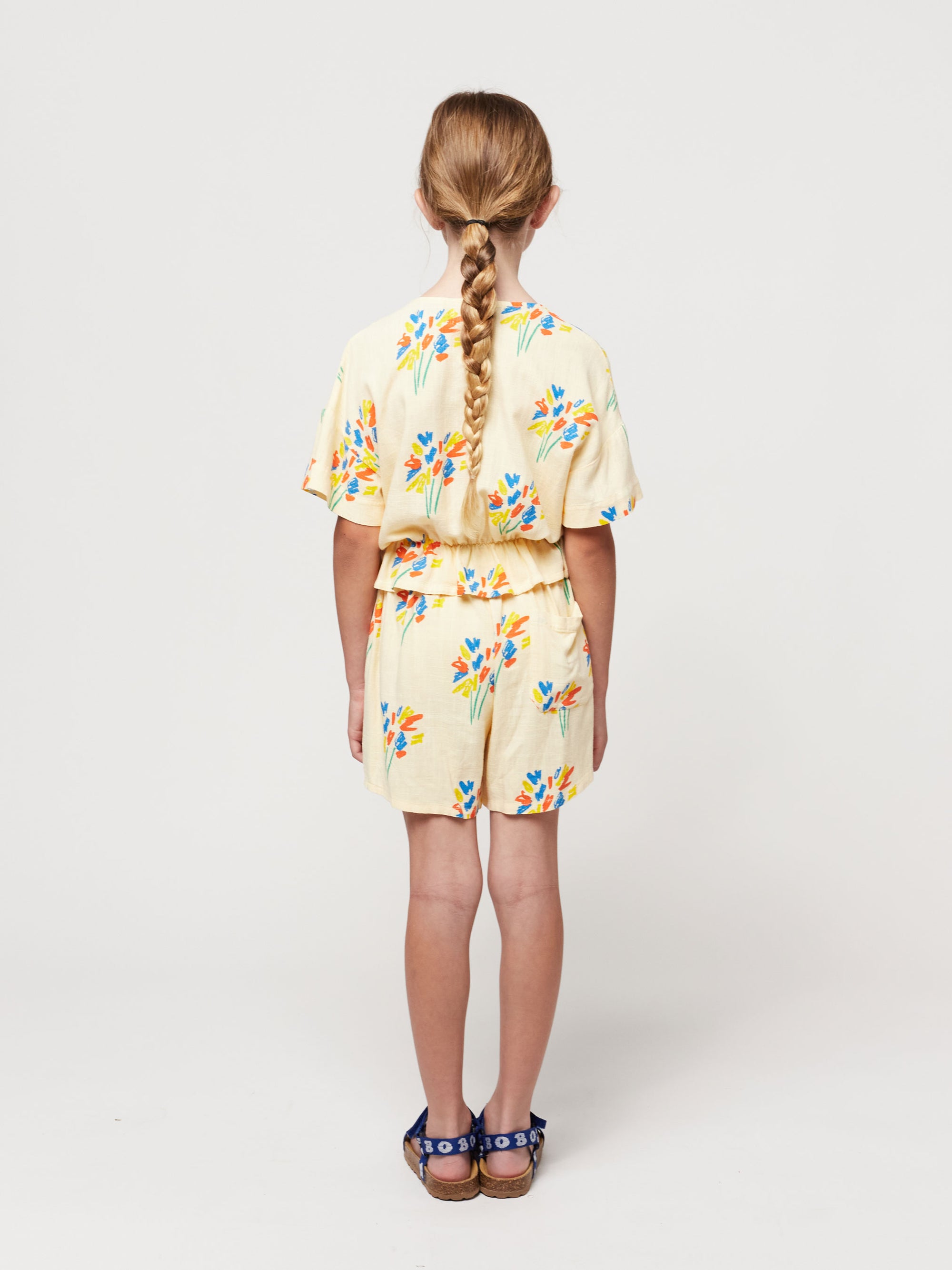 85% viscose, 15% linen light yellow shorts. Designed with regular crotch, elasticated waistband, embroidery, loose fit, regular, short, seam pocket and linen blend. Made in Spain.