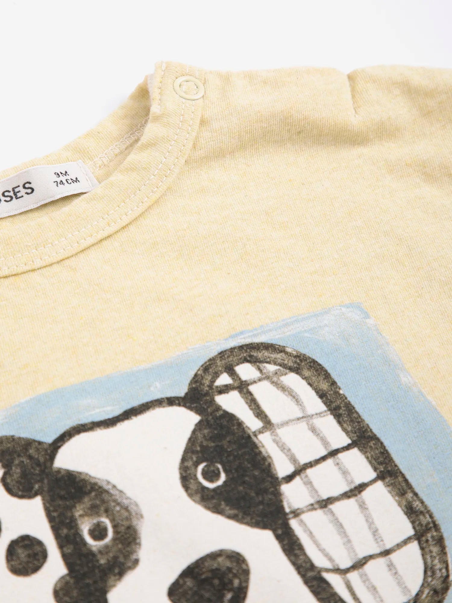 Yellow t-shirt. Designed with short sleeves, dropped shoulder, shoulder snap fastening, loose fit and round neck. Made in Spain.