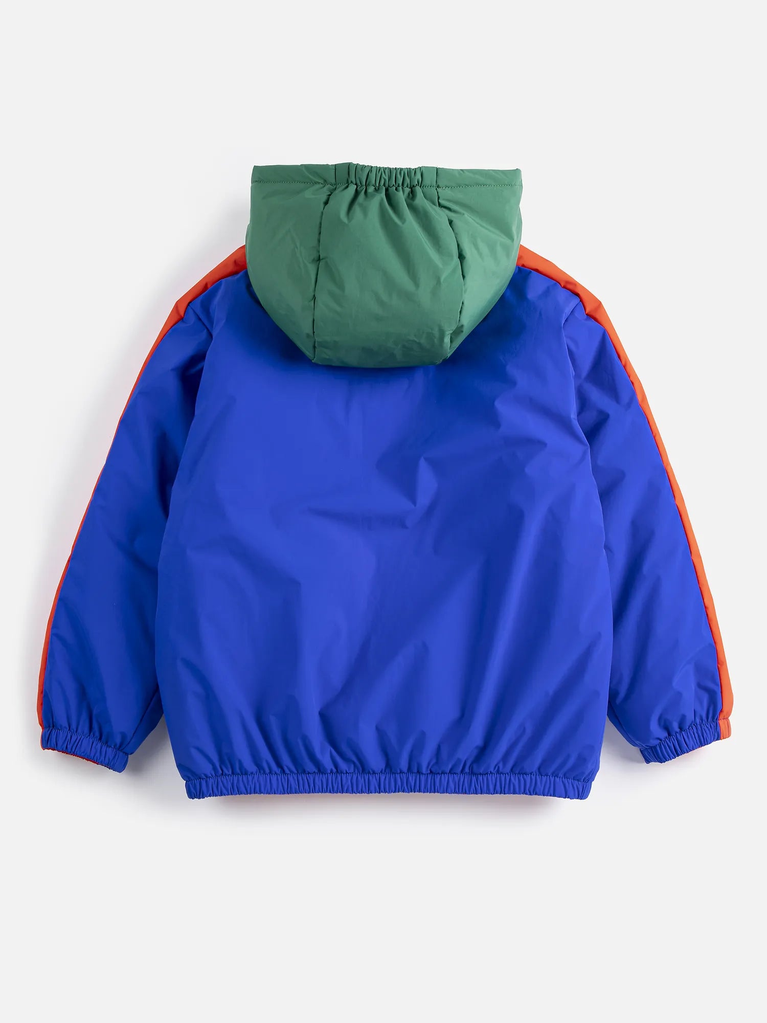 Multicolor anorak. Designed with hooded, long sleeves, zipped, elasticated bottom, elasticated cuffs, ligth padded, reversible, seam pocket, relaxed fit and water repellent. Made in China.