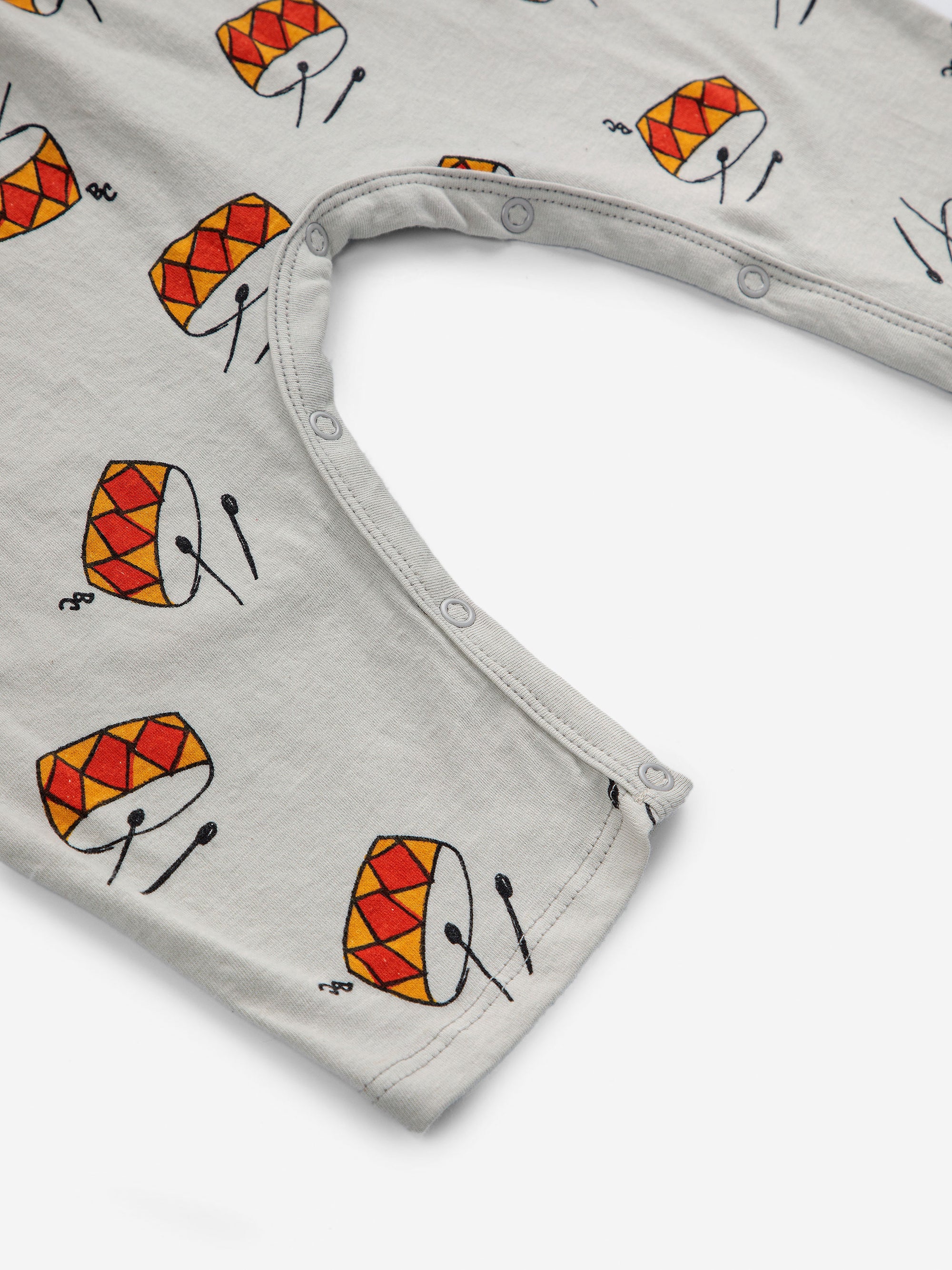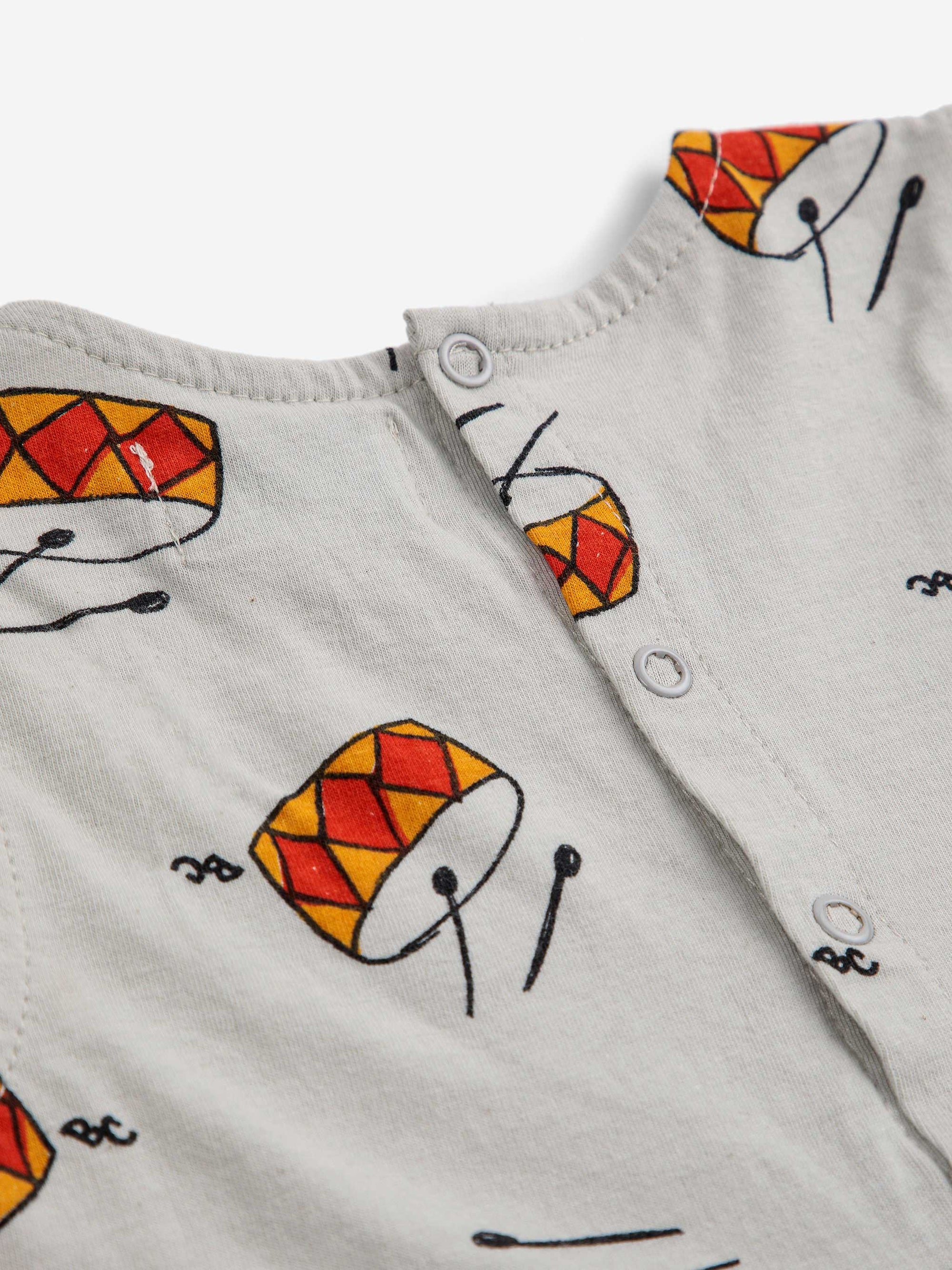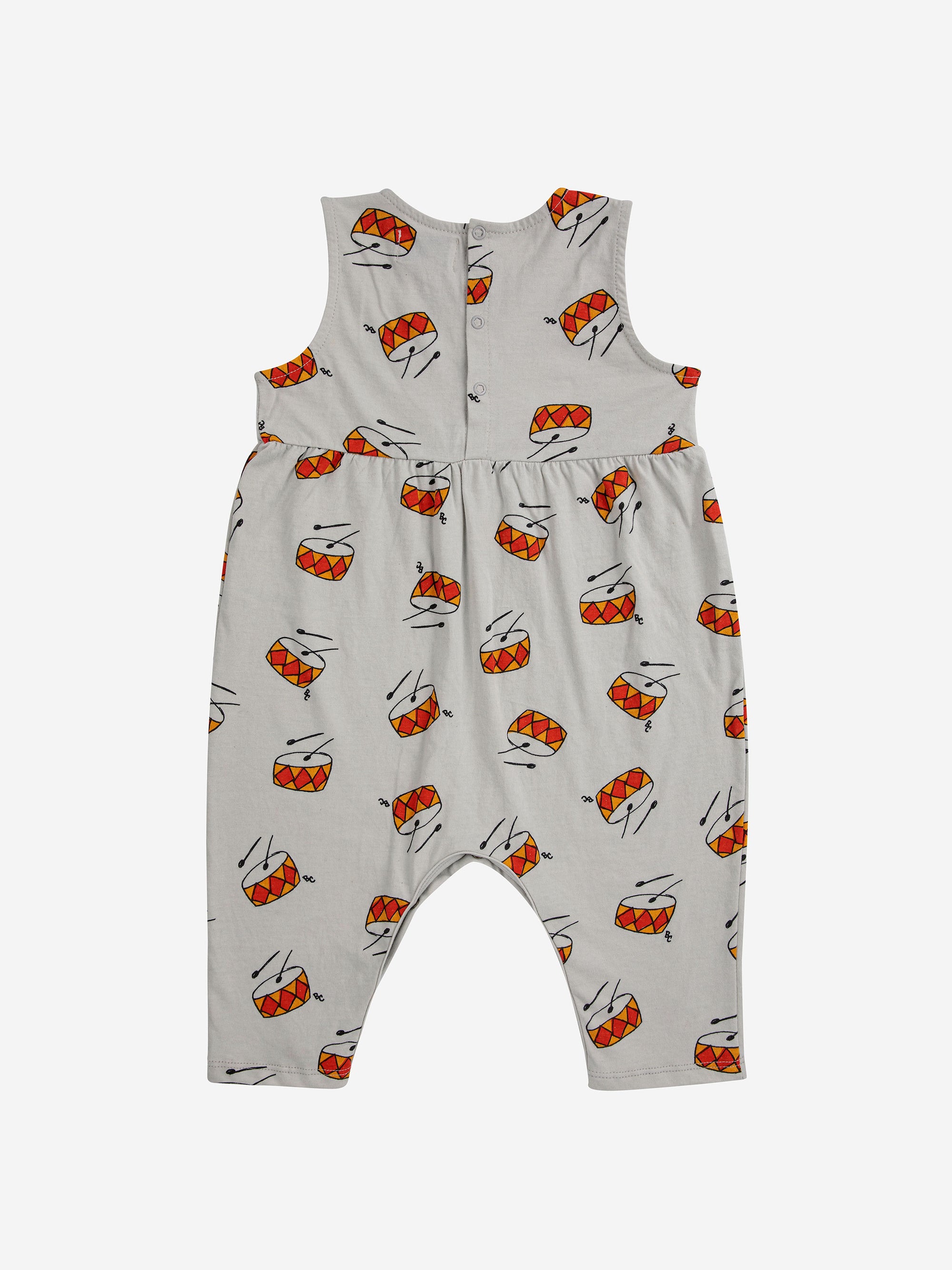 100% organic cotton beige overall. Designed with sleeveless, back snap fastening, crotch snap fastening, gathering detail, loose fit and wide round neck. Made in Spain.