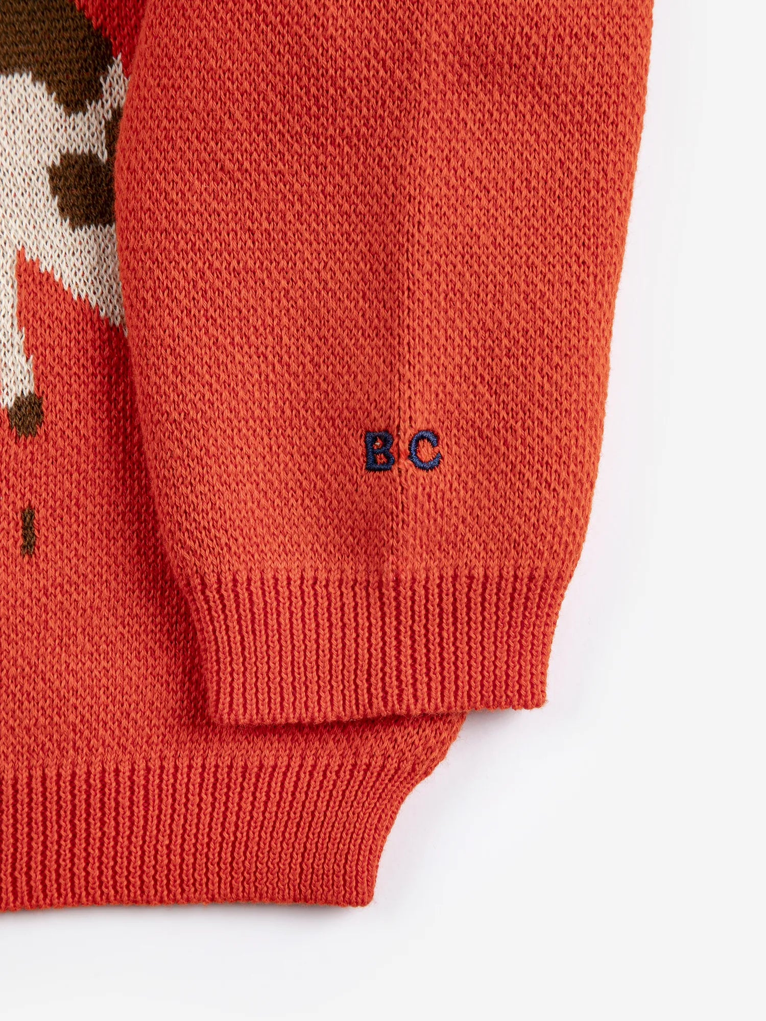 Red jumper. Designed with long sleeves, dropped shoulder, shoulder button fastening, ribbed cuffs, embroidery, jacquard, fine knit, loose fit, ribbed bottom and round neck. Made in Spain.