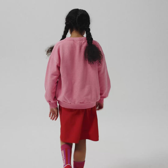Pink sweatshirt. Designed with ribbed cuffs, loose fit, ribbed bottom, round neck and fleece. Made in Spain.