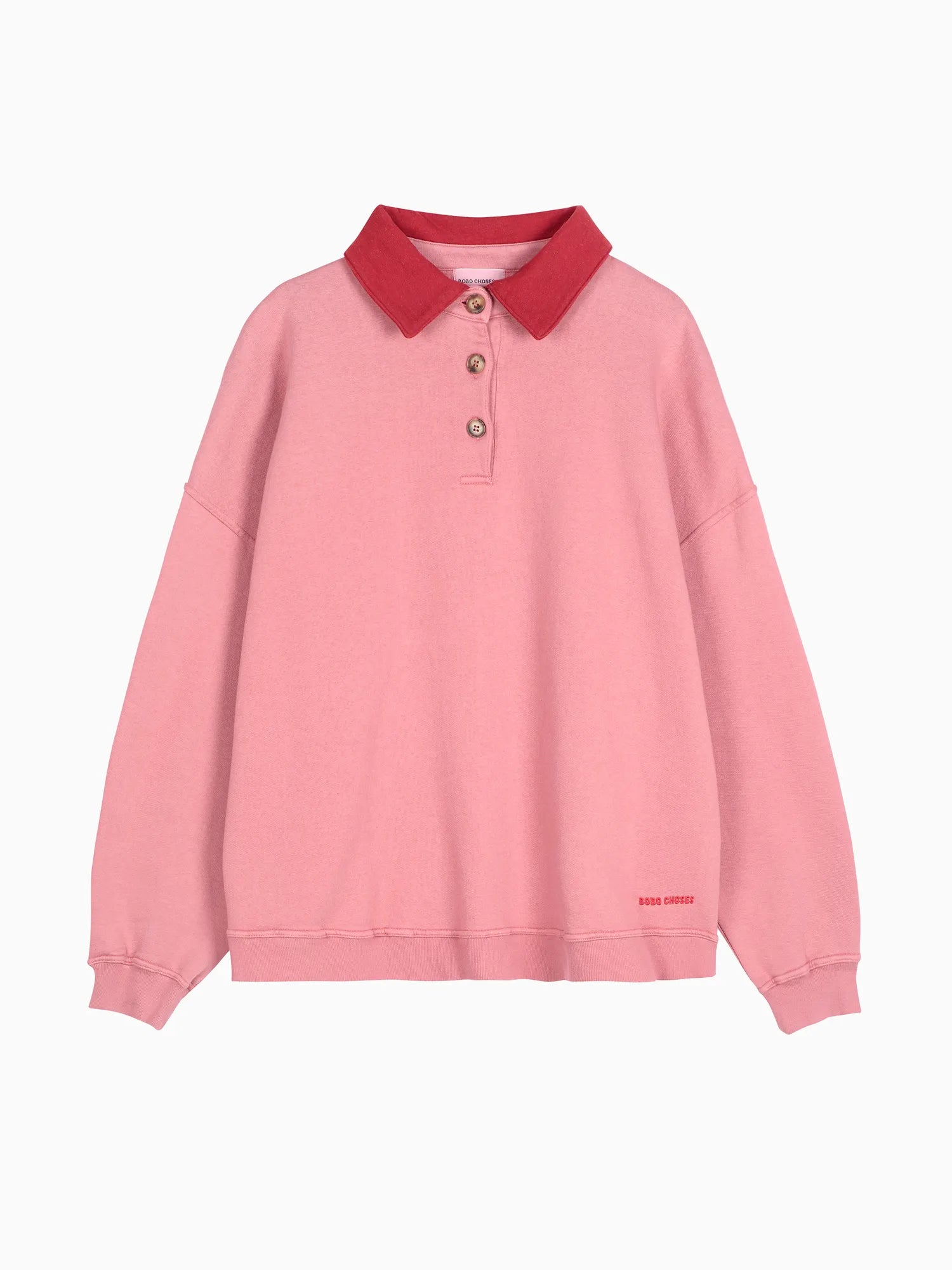 Pink sweatshirt. Designed with oversized fit, dropped shoulder seam and stretchy fabric. Fits true to size, take your normal size. Made in Portugal.