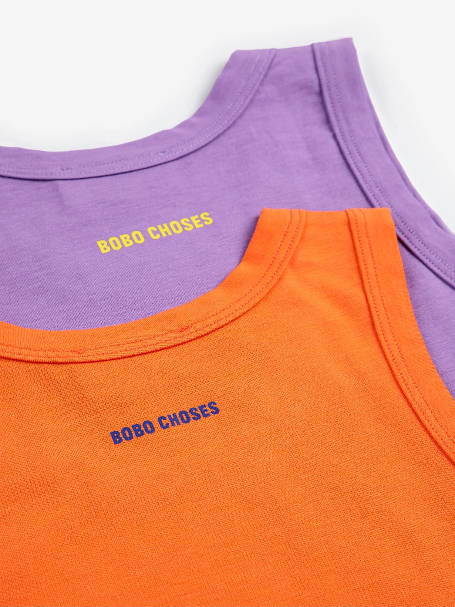 Violet and red tank top set made from 45% modal, 43% organic cotton and 12% elastane. Designed with sleeveless, slim fit and wide round neck.