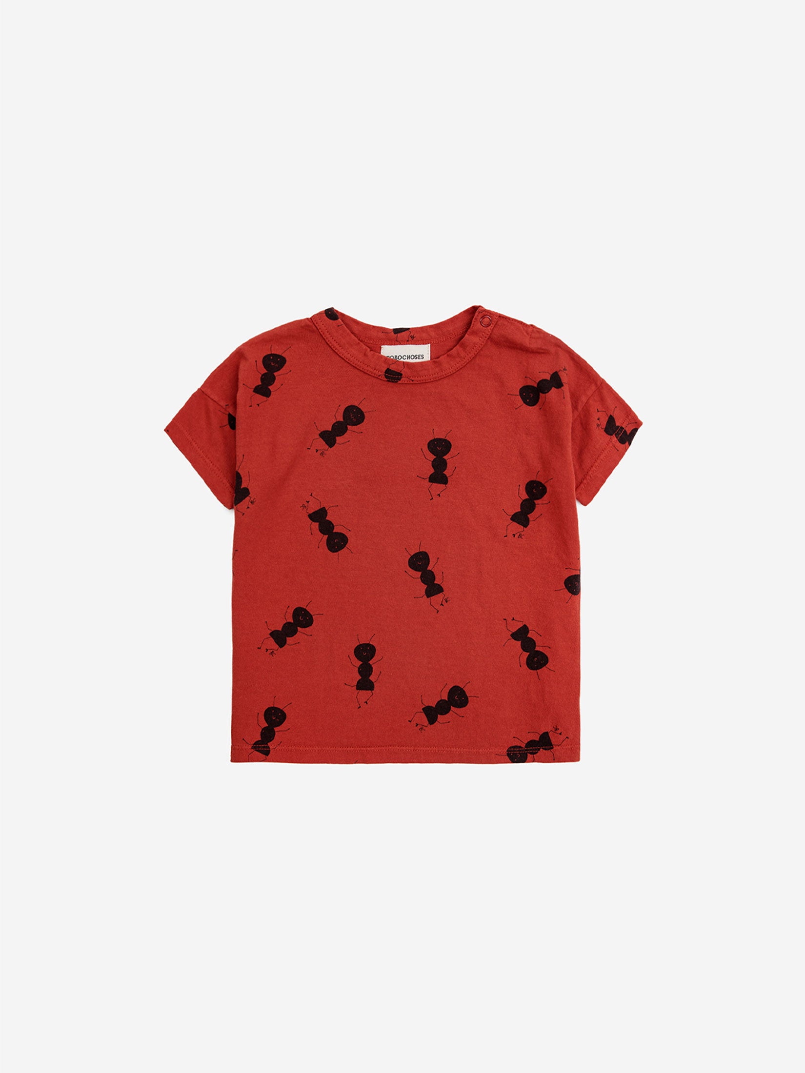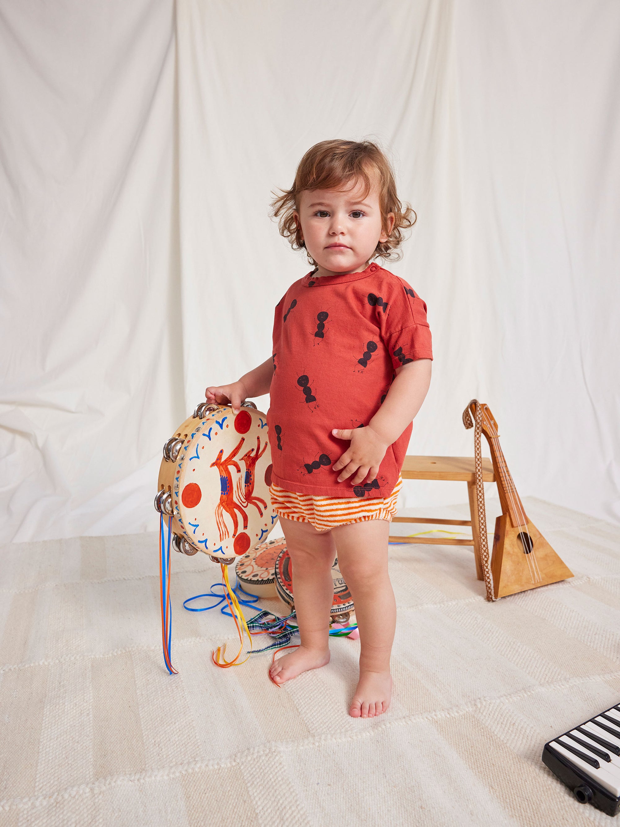 100% organic cotton burgundy red t-shirt. Designed with short sleeves, dropped shoulder, shoulder snap fastening, loose fit and round neck. Made in Spain.