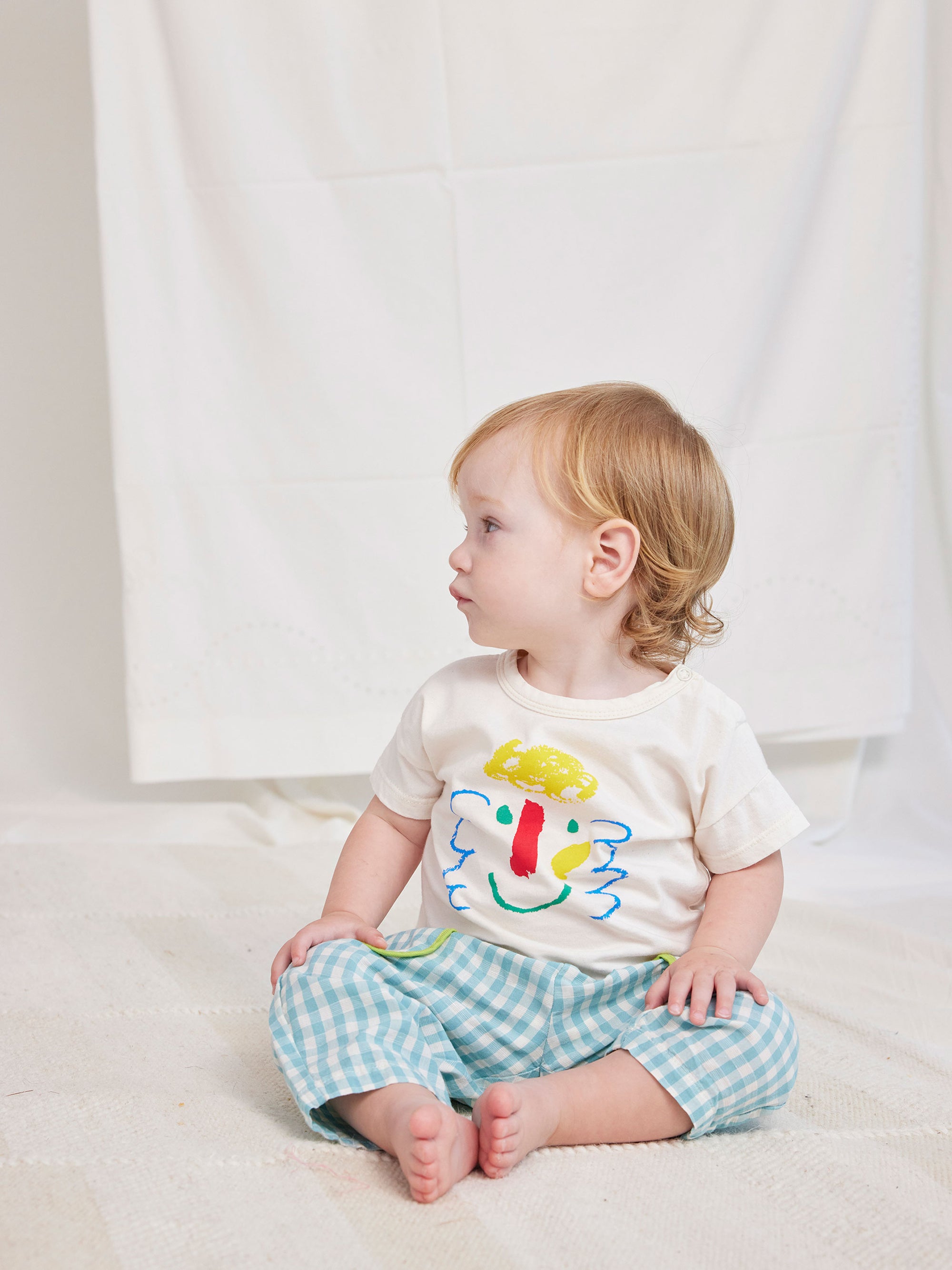 79% cotton, 21% linen turquoise pants. Designed with regular crotch, elasticated waistband, embroidery, baggy fit, ankle length and patch pocket. Made in Spain.