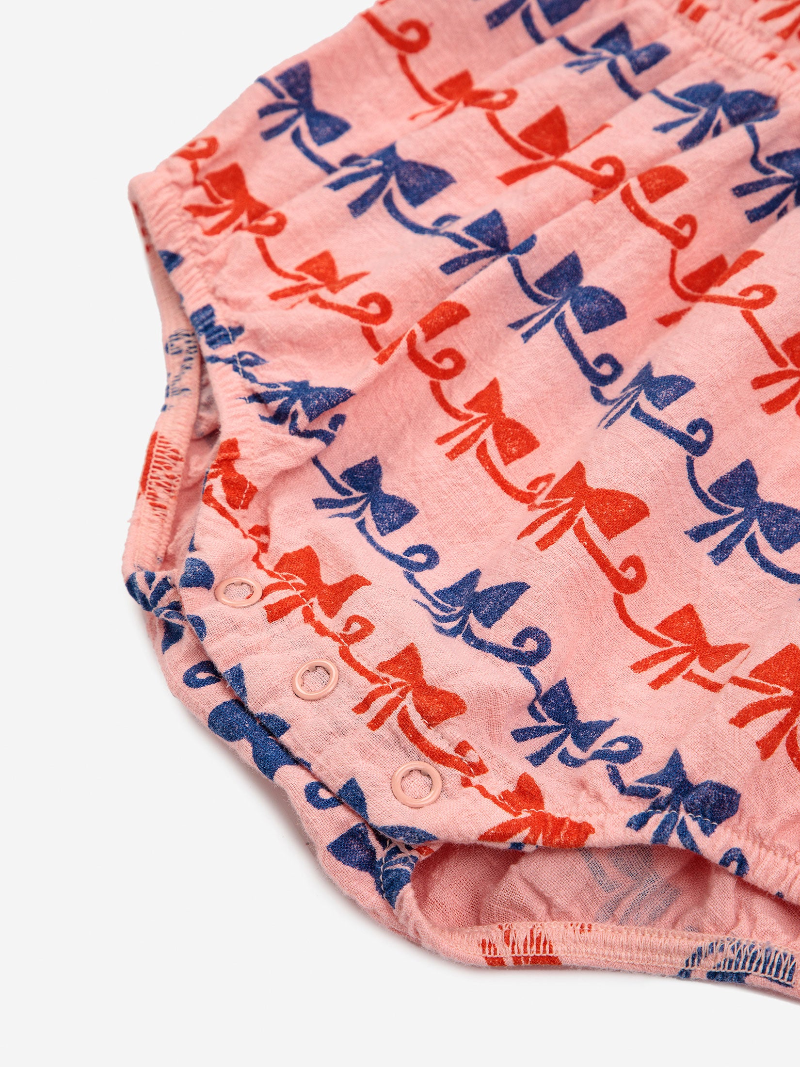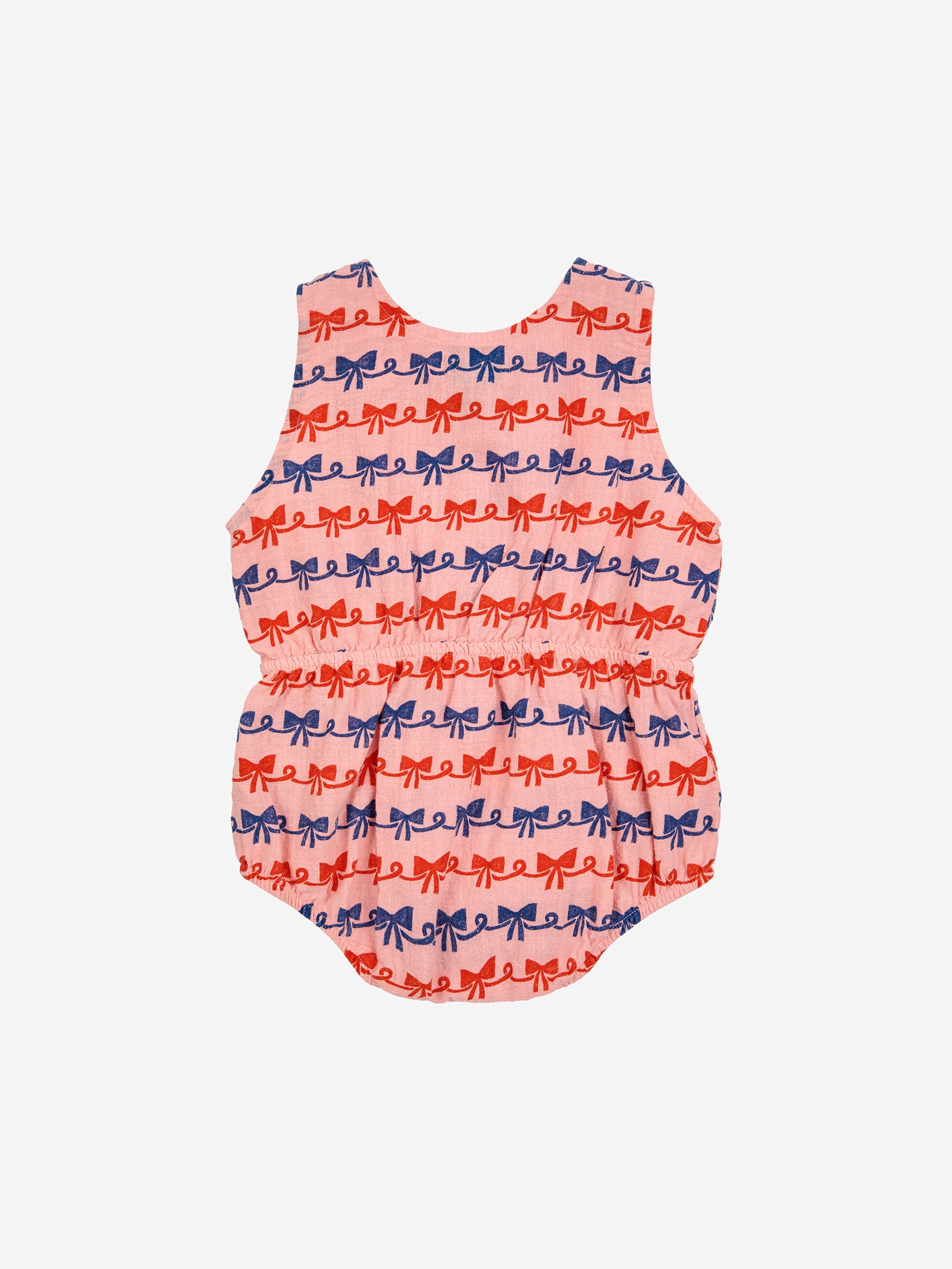 100% BCI cotton pink playsuit. Designed with sleeveless, front button fastening, crotch snap fastening, straight fit and round neck. Made in Spain.
