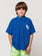 85% cotton, 15% polyester blue t-shirt. Designed with short sleeves, front snap fastening, loose fit and polo neck. Made in Spain.