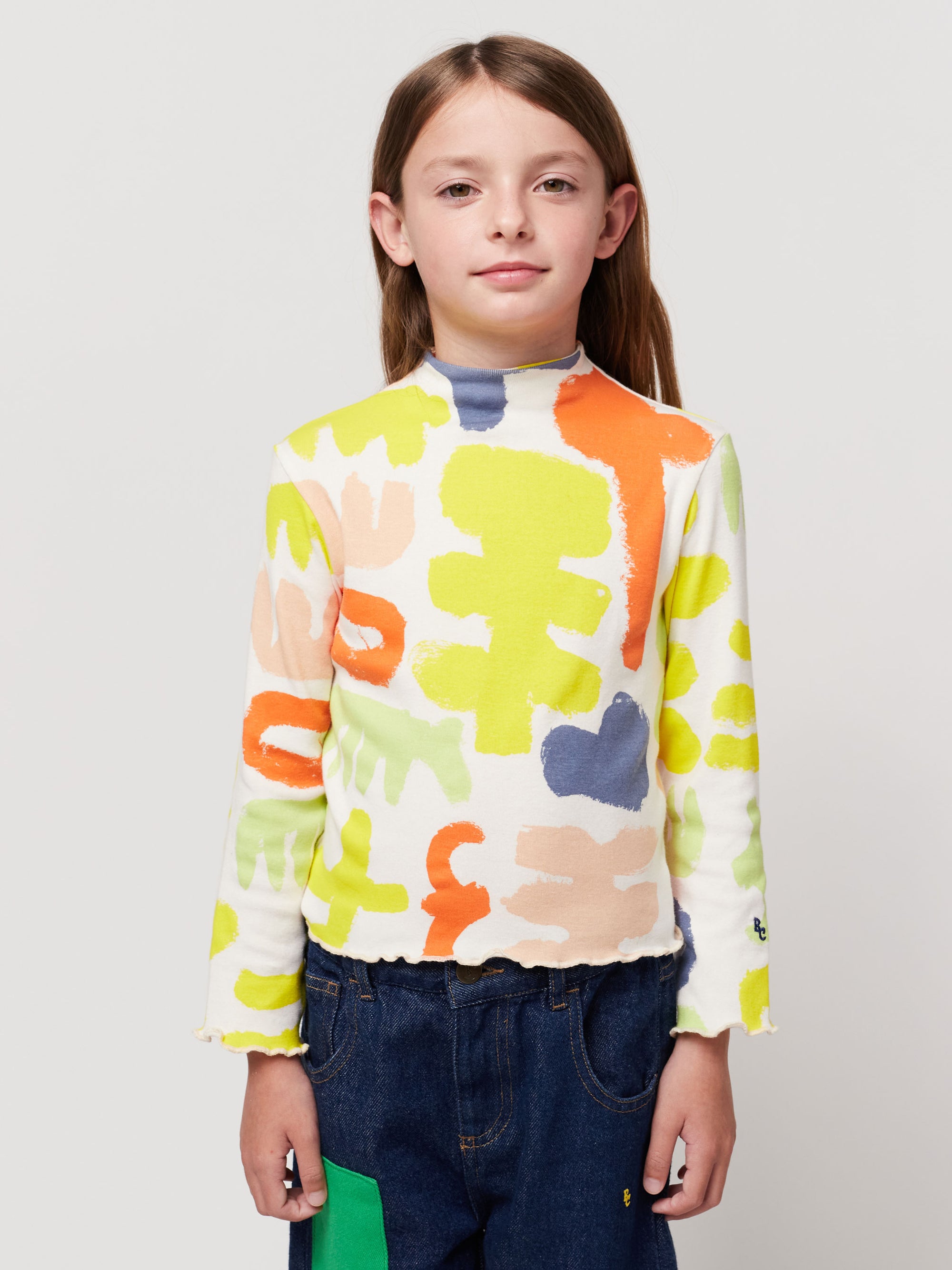 95% organic cotton, 5% elastane offwhite t-shirt. Designed with long sleeves, embroidery, slim fit and high neck. Made in Spain.