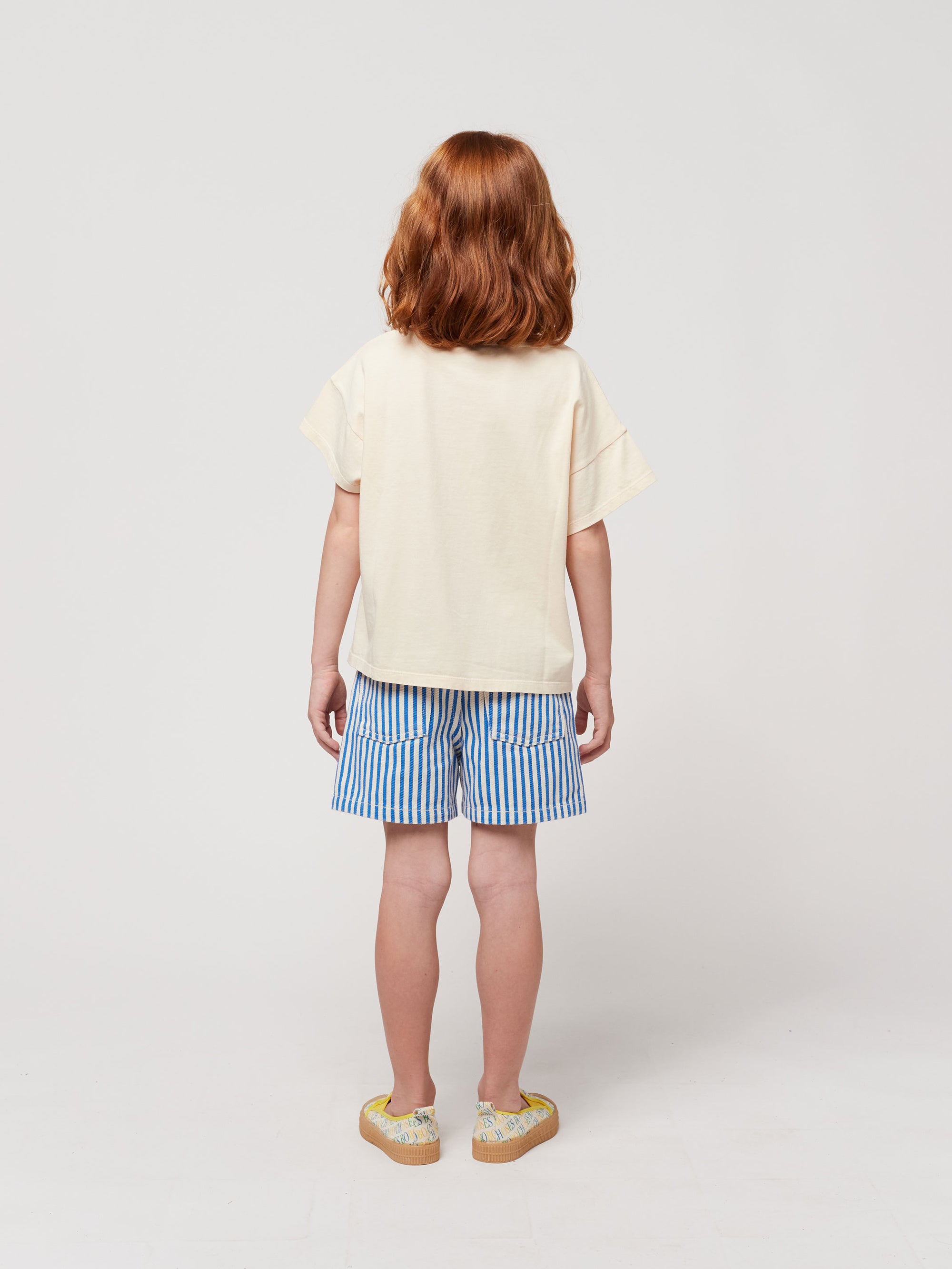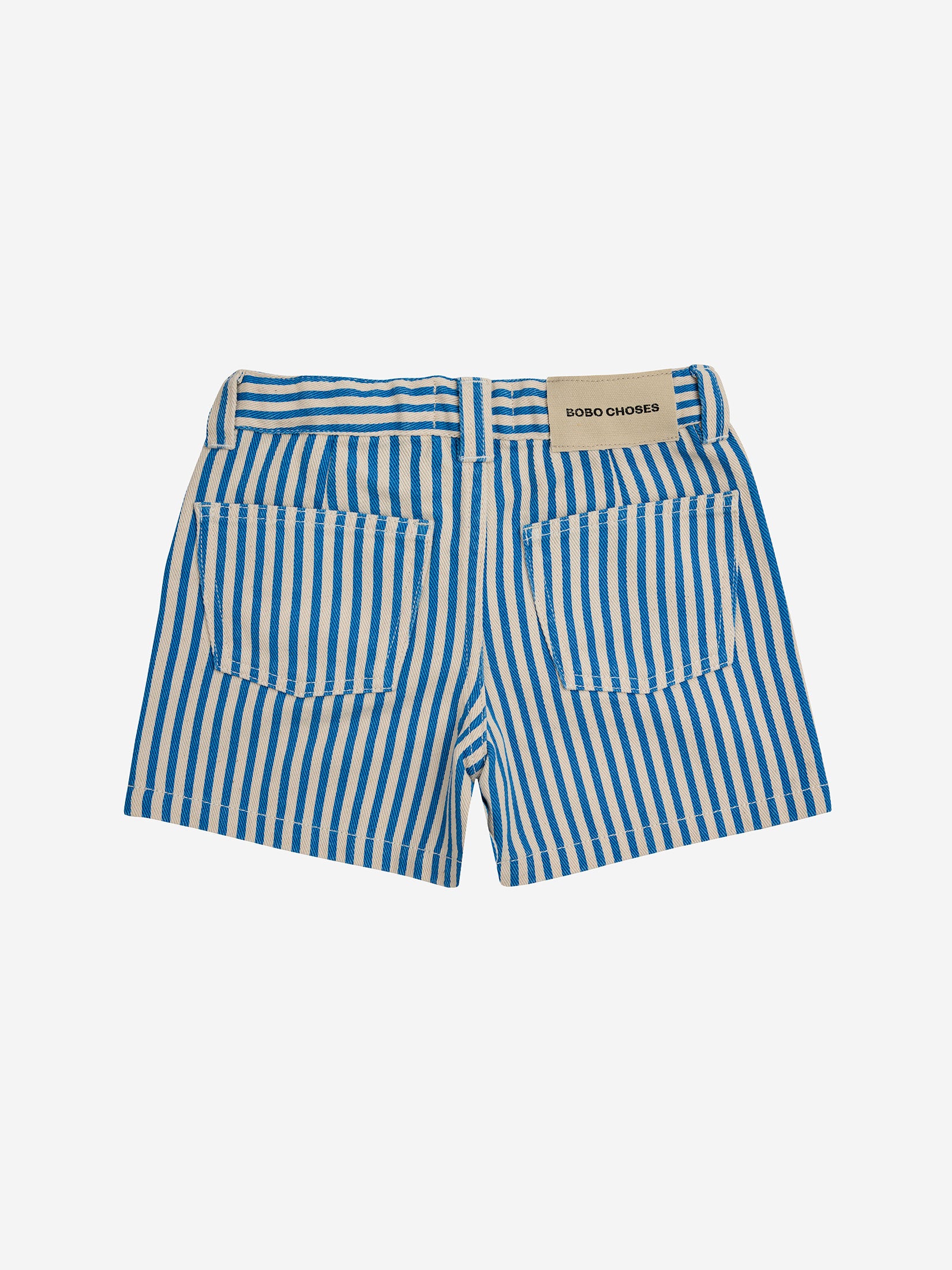 100% cotton blue shorts. Designed with regular crotch, adjustable waistband, front button fastening, zipped, straight fit, regular, back yoke, beltloop, short and five pockets. Made in Portugal.