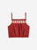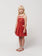 79% BCI cotton, 14% organic cotton, 7% recycled cotton red shirt. Designed with adjustable straps, elasticated bottom, embroidery, loose fit, single handles, structured fabric and ruffled detailing. Made in Spain.