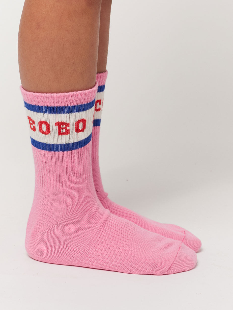 74% cotton, 24% polyamide, 2% elastane fuchsia socks. Made in Spain.