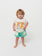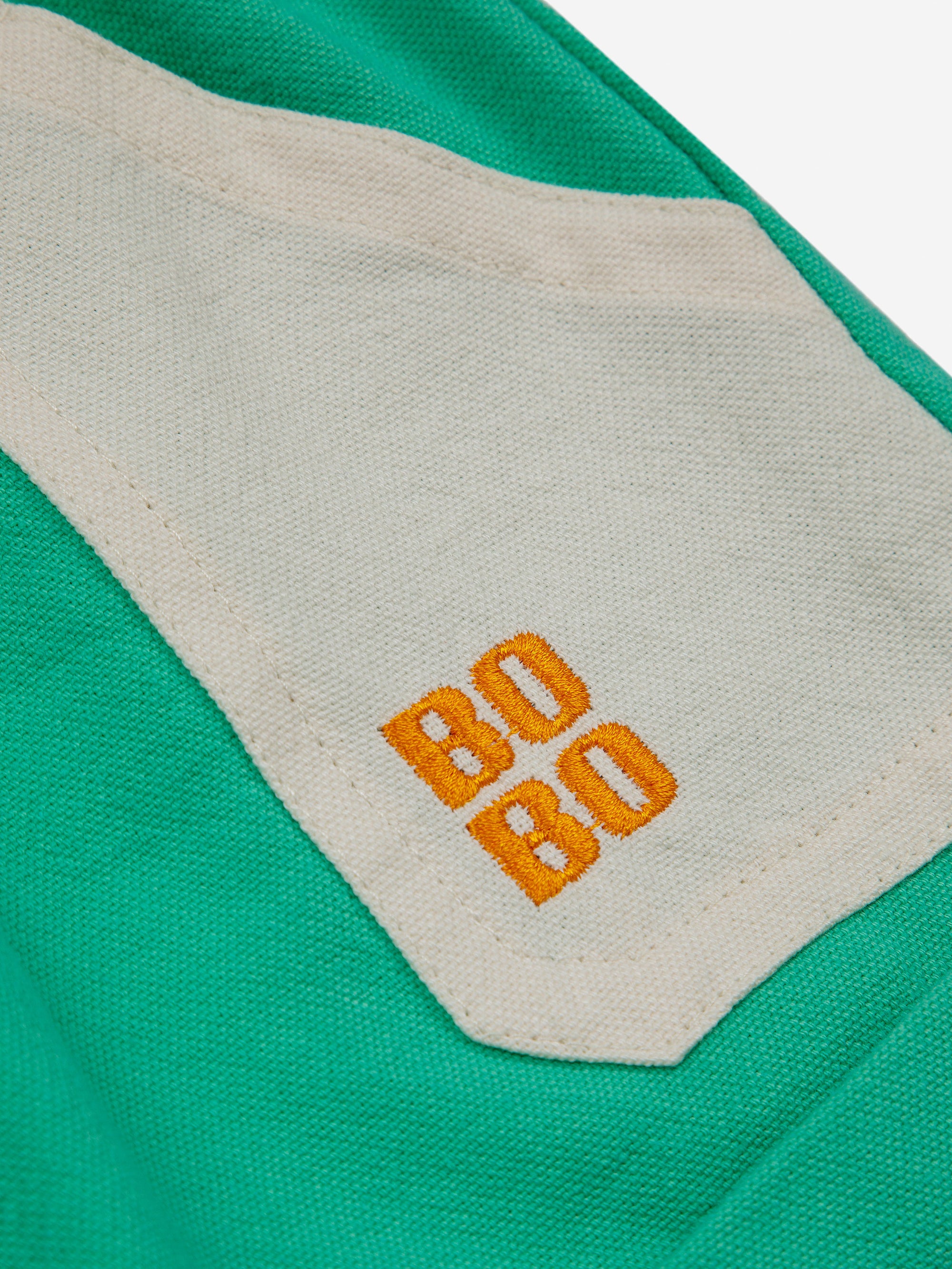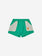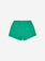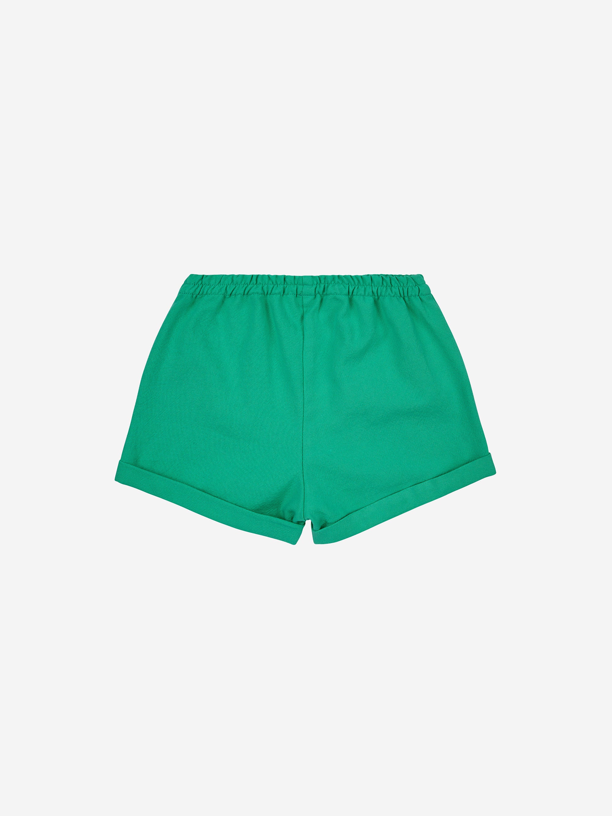 100% organic cotton green shorts. Designed with elasticated waistband, embroidery, regular, short, patch pocket and turn up hem. Made in Spain.