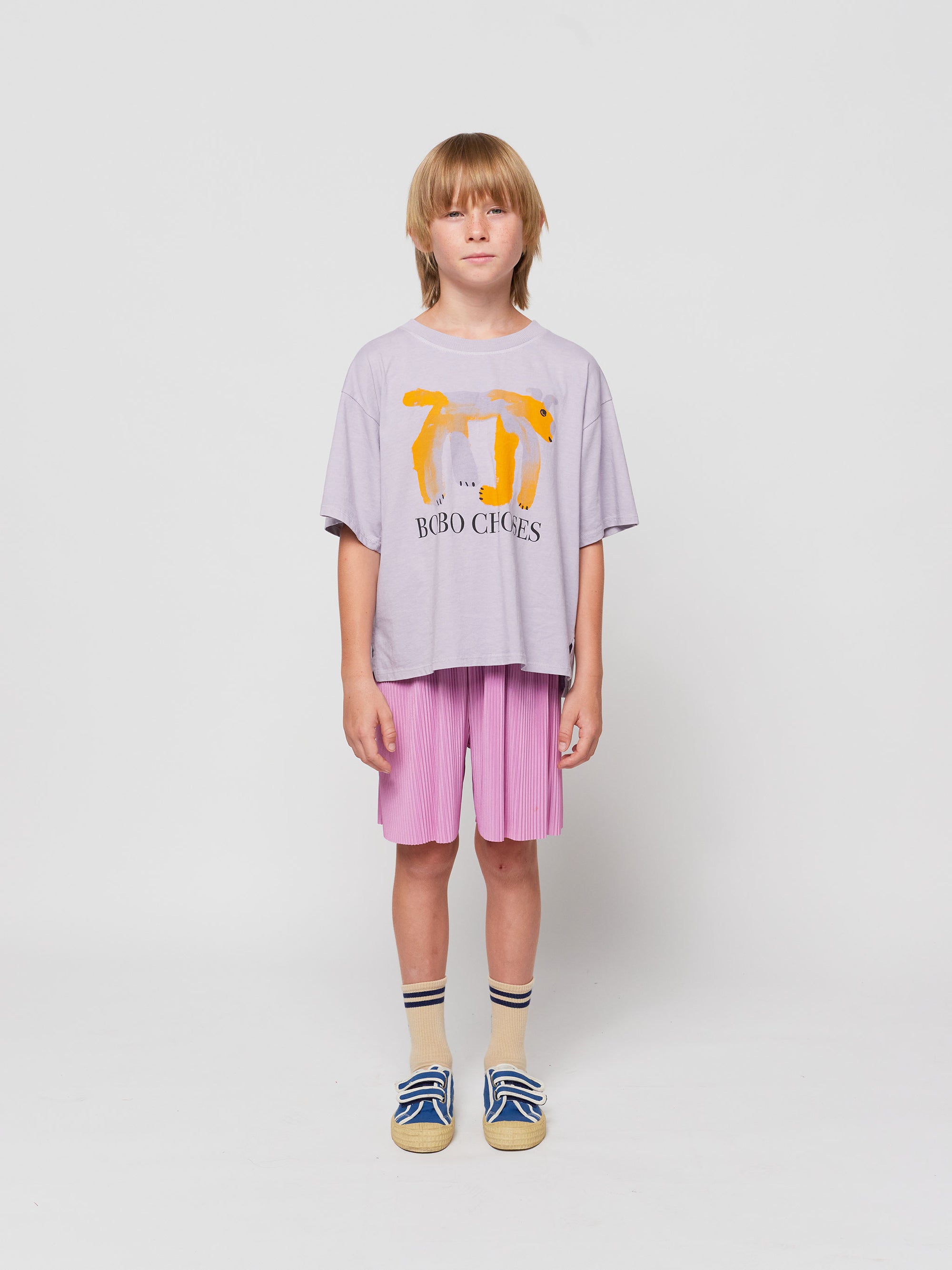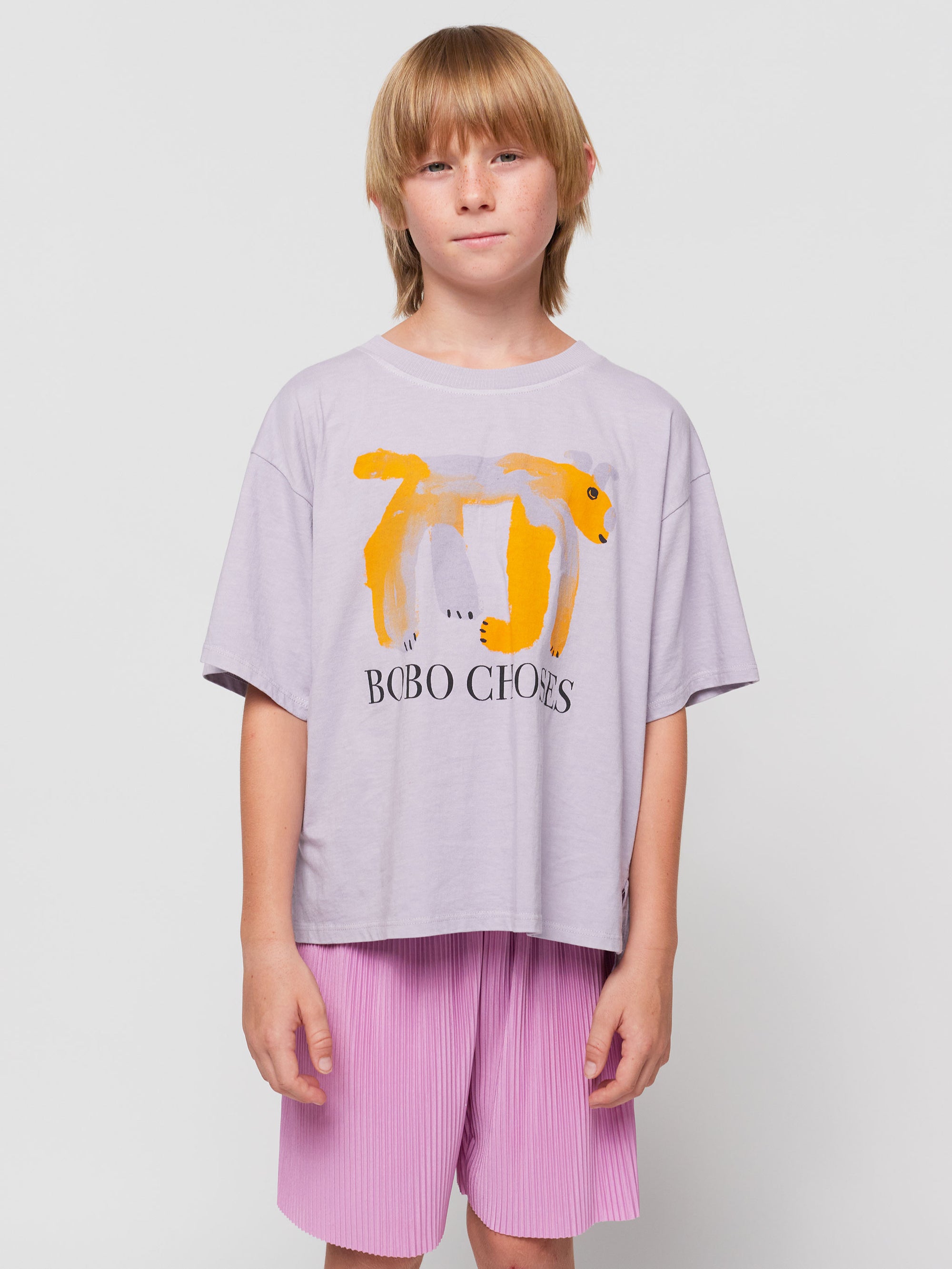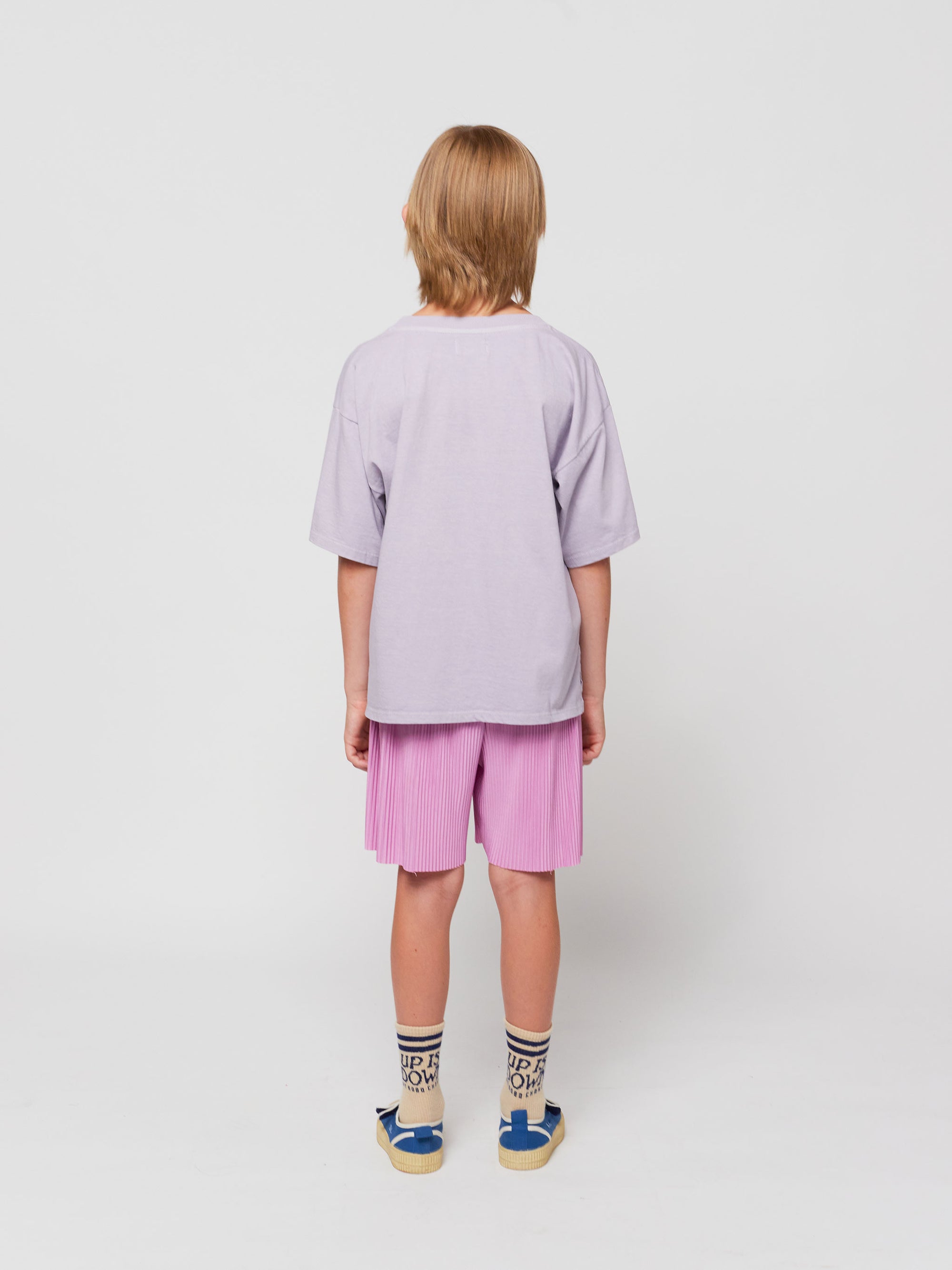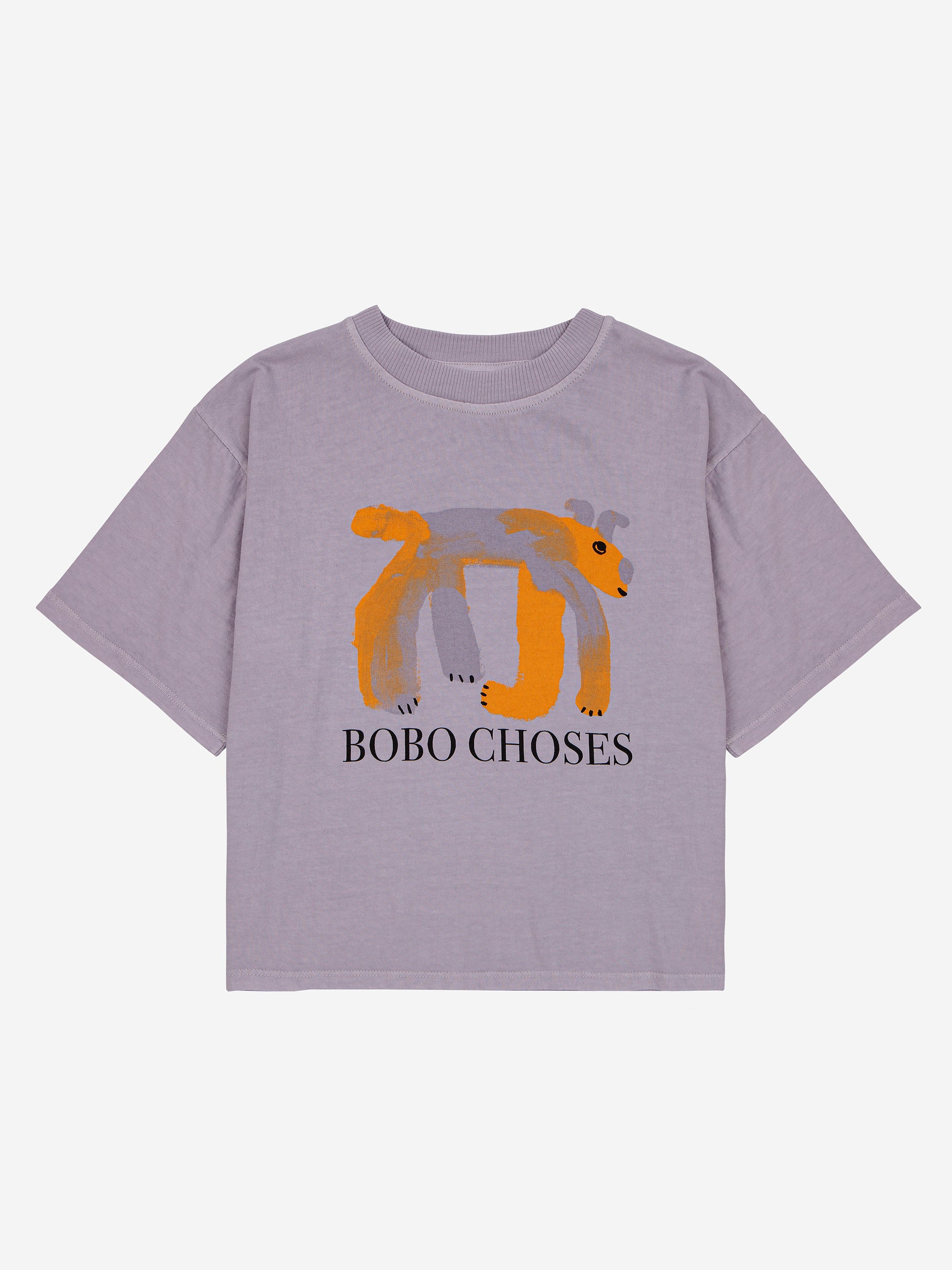 100% organic cotton prussian blue t-shirt. Designed with short sleeves, loose fit, asymetric hem, side slit and round neck. Made in Spain.