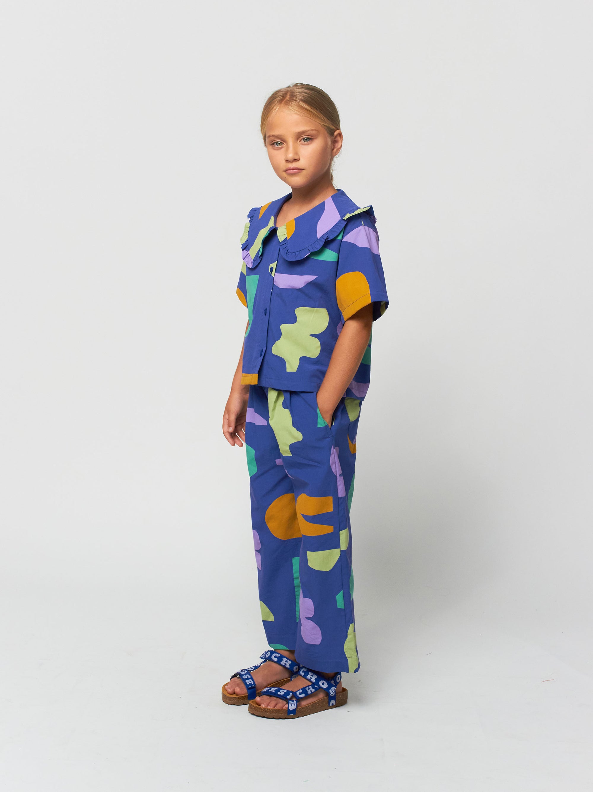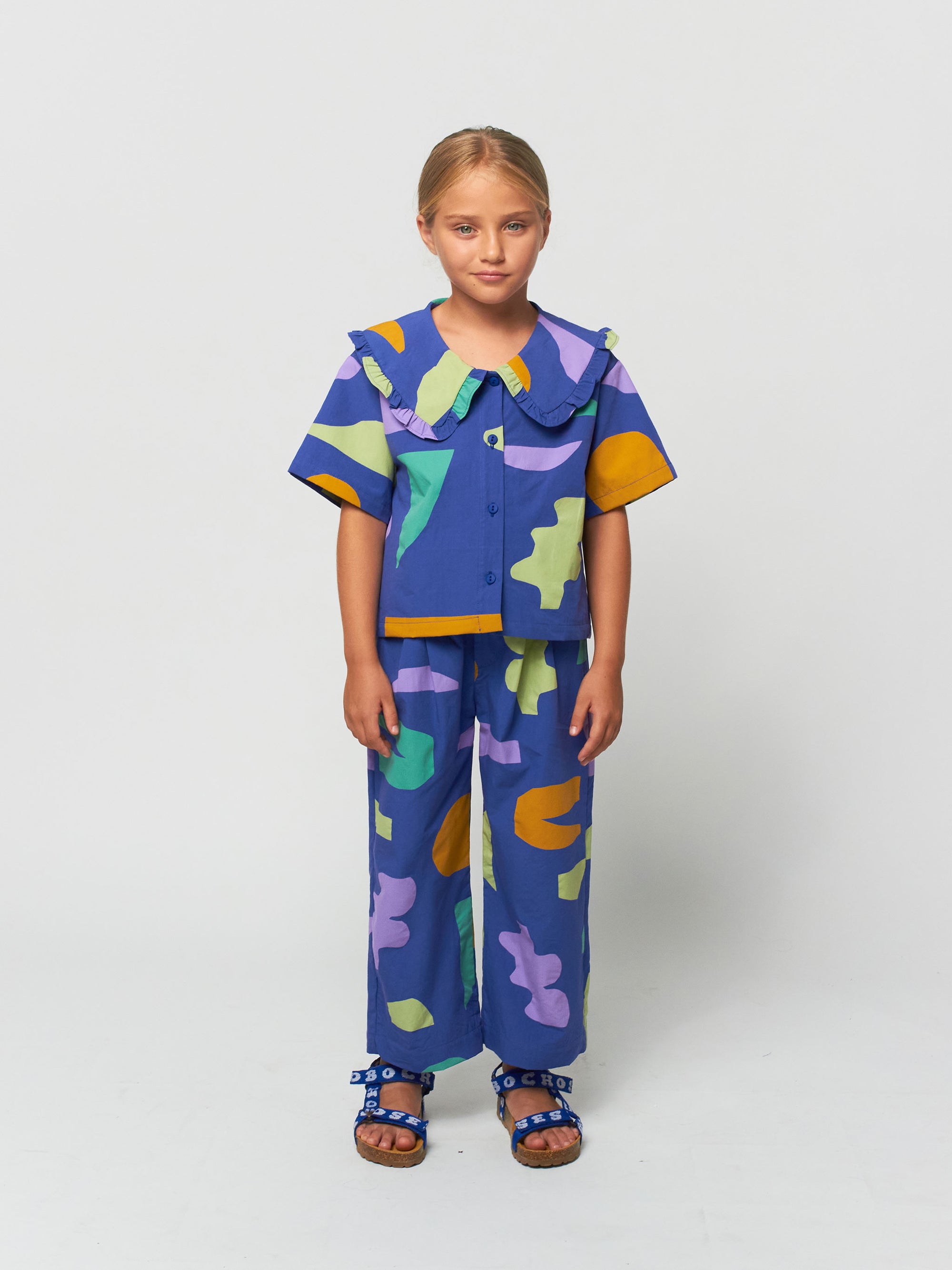 100% organic cotton blue culotte. Designed with regular crotch, adjustable waistband, front button fastening, front zip fastening, double pleat, embroidery, wide leg fit, ankle length and seam pocket. Made in Spain.