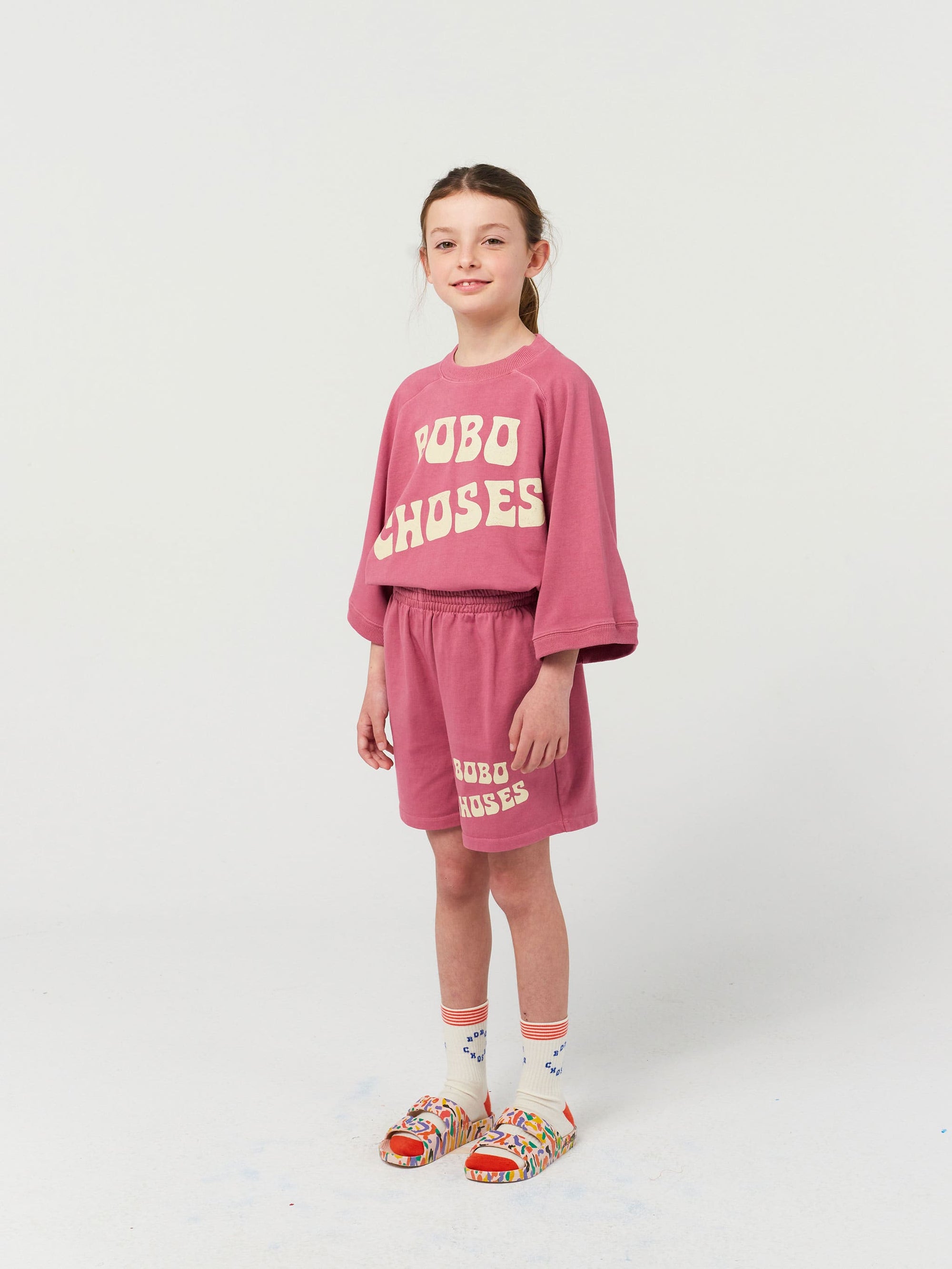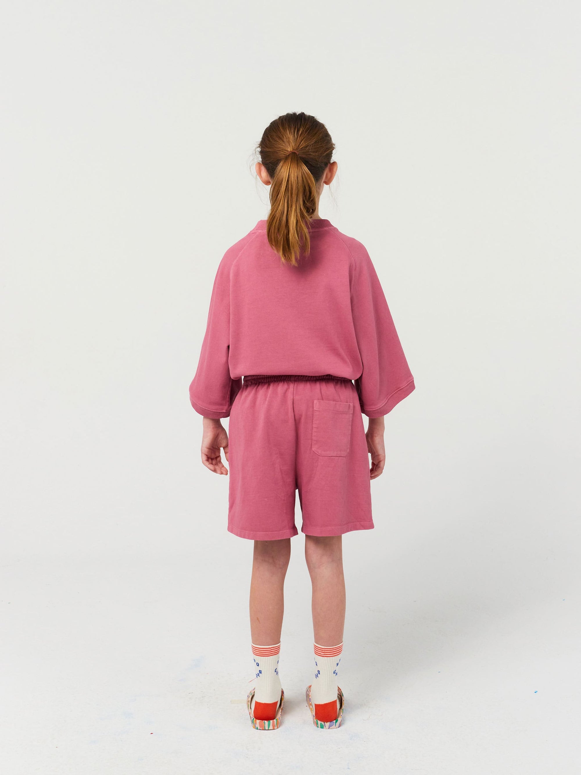 100% cotton pink shorts. Designed with adjustable waistband, elasticated waistband, side pocket, loose fit, regular and over knee length. Made in Spain.