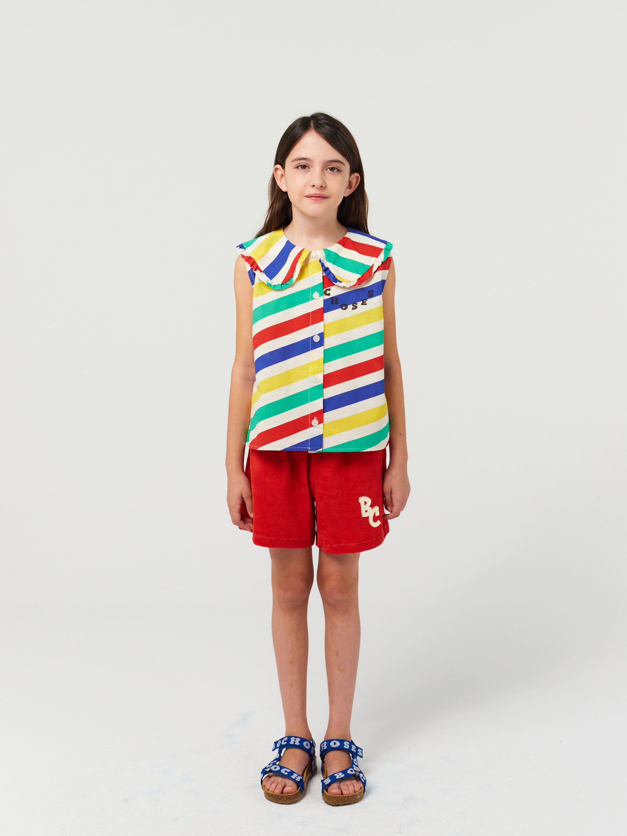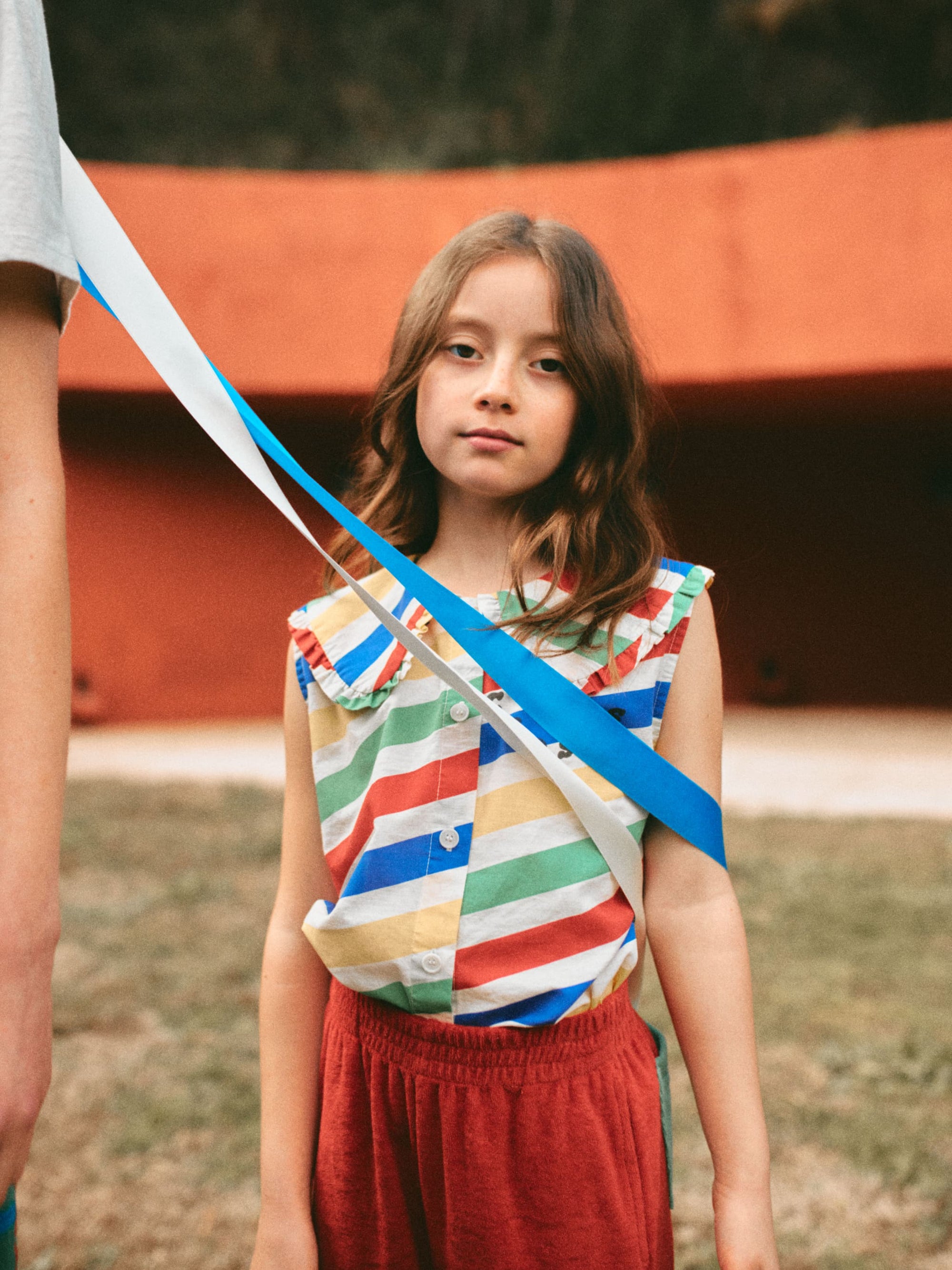 100% BCI cotton multicolor shirt. Designed with flat collar, sleeveless and front button fastening. Made in Spain.