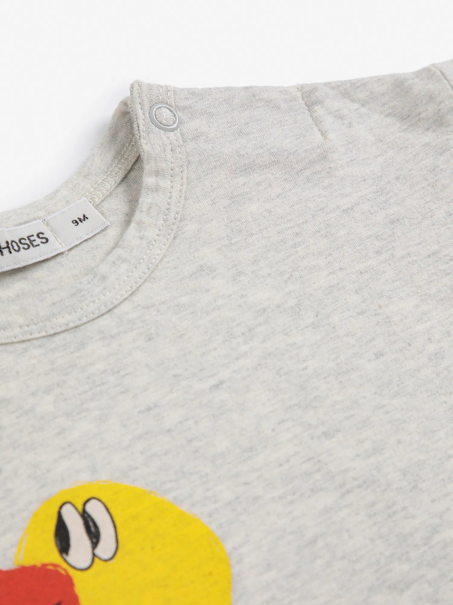 Light heather grey t-shirt. Designed with long sleeves, dropped shoulder, shoulder snap fastening, loose fit and round neck. Made in Portugal.