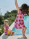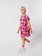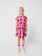 Purple dress. Designed with short sleeves, elasticated waistband, evasé fit, over knee length and round neck. Made in Spain.