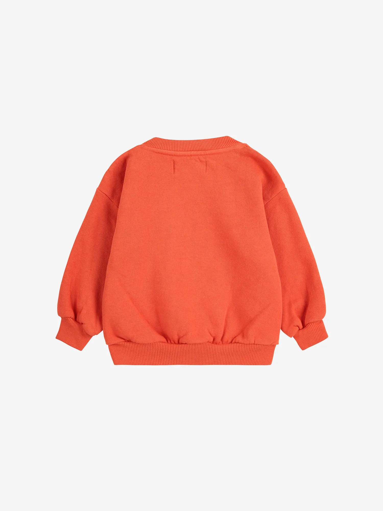 100% Organic Cotton Orange loungewear set. Designed with long sleeves, dropped shoulder, shoulder snap fastening, elasticated waistband, ribbed cuffs, loose fit, baggy fit, ribbed bottom, long length, round neck and inner brush fleece. Made in Spain.